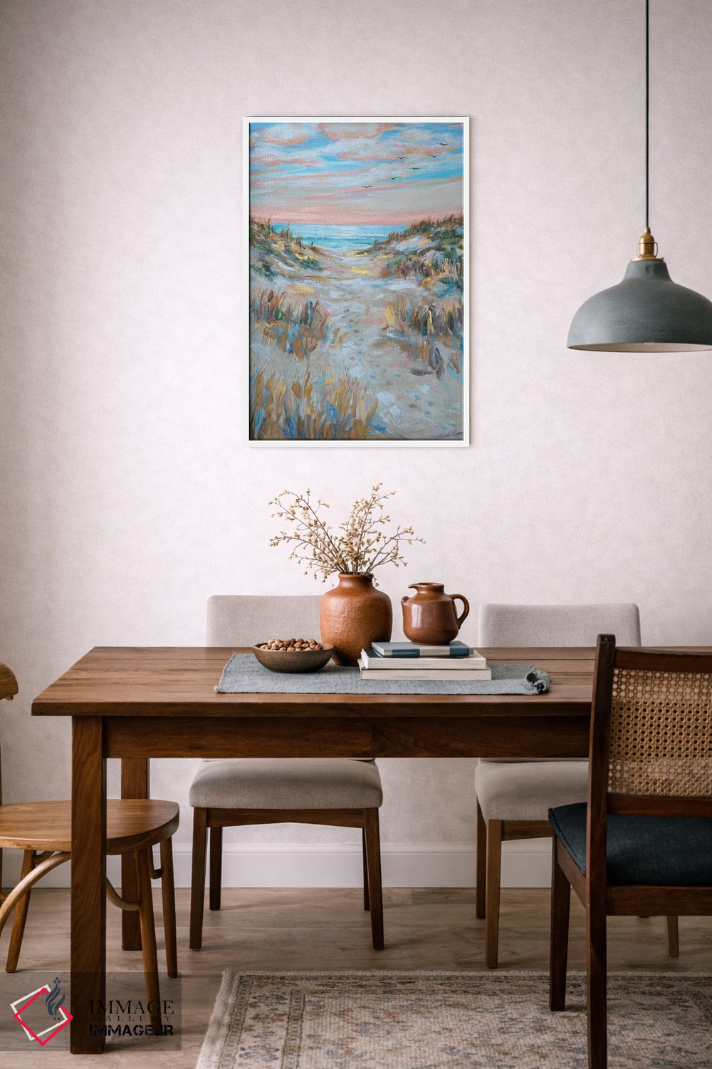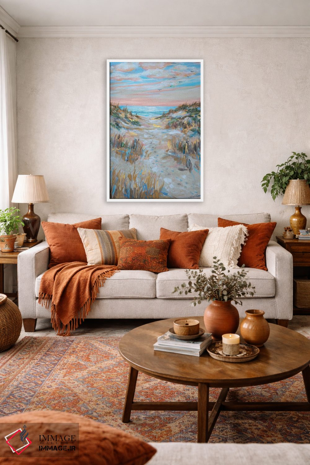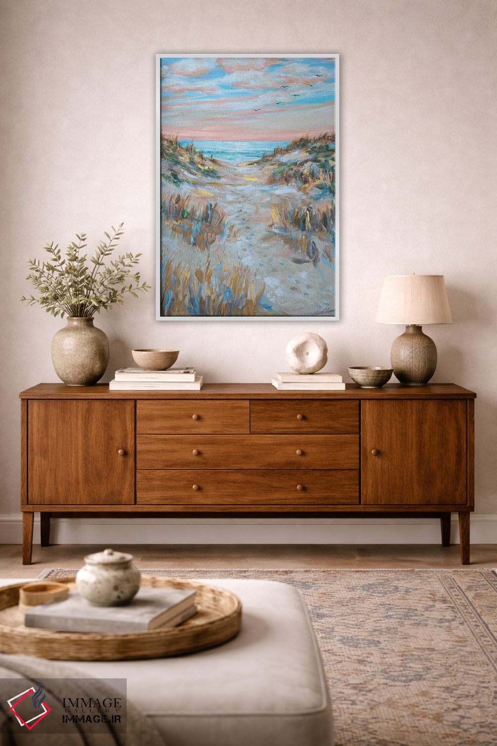بوم گالری ایماژ طوری طراحی شده که اثر روی دیوار «پرداختشده» و حرفهای دیده شود—نه پرزرقوبرقِ بیپایه؛ بلکه دقیق و خوشپرداخت. با بافت ظریف کنواس، حس اثر هنری را در نگاه نزدیک نگه میدارد و در چیدمانهای مدرن و مینیمال خیلی خوب مینشیند. قابپذیری کمک میکند تا بتواند اثر را نقطهٔ کانونی محیط کند و نتیجه را یکدستتر میکند. برای سفارش اندازه یا قاب متفاوت، تیم ایماژ راهنمایی میکند تا انتخاب نهایی هماهنگتر باشد؛ در کنار نورپردازی درست، جلوهی گالریوار بیشتری حس میشود. در کنار چوب و متریالهای طبیعی، بافت کنواس دلنشینتر دیده میشود.