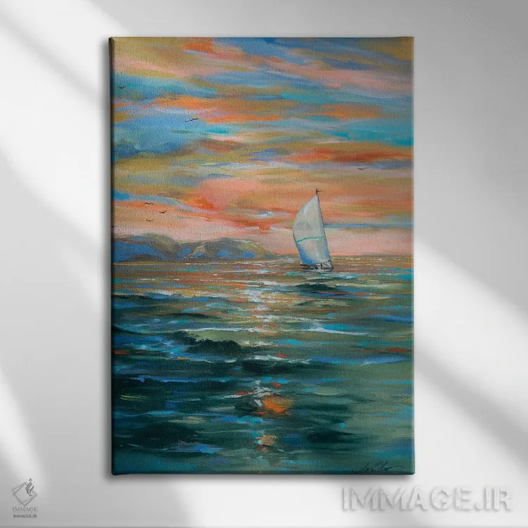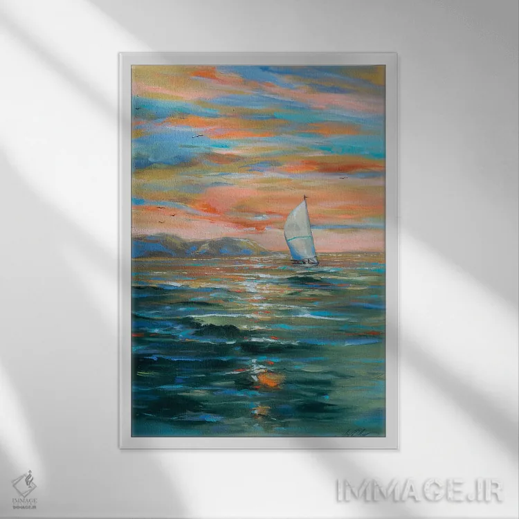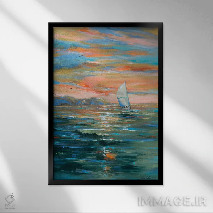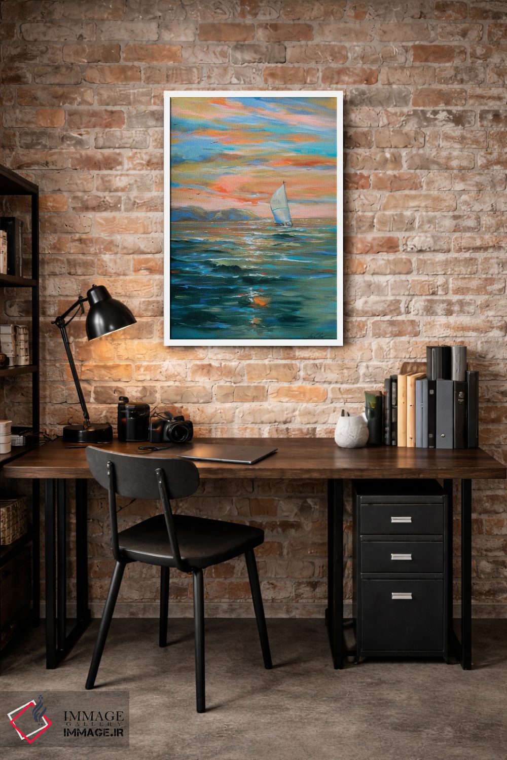 براساس پالت ترکیبی اثر، قاب تیک گرم (چوبی) پیشنهاد اول است و مشکی مات (فریم متوسط) مکمل. برای سفارشهای پروژهای با ابعاد و قابهای اختصاصی با ایماژ در تماس باشید.