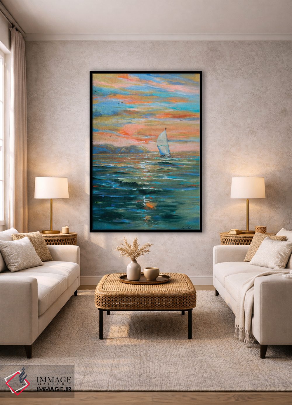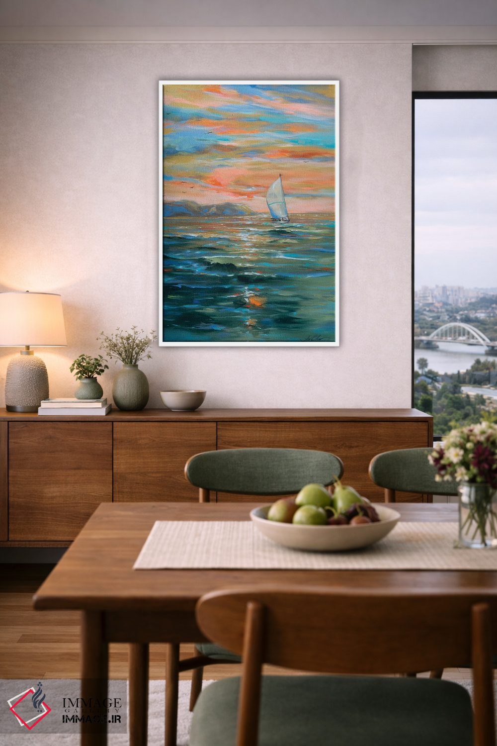 «قایقرانی به دور» اثرِ «لیندا اولسن» اگر میخواهید فضا کمی هنریتر و معاصرتر دیده شود، انتخاب خوبیست.