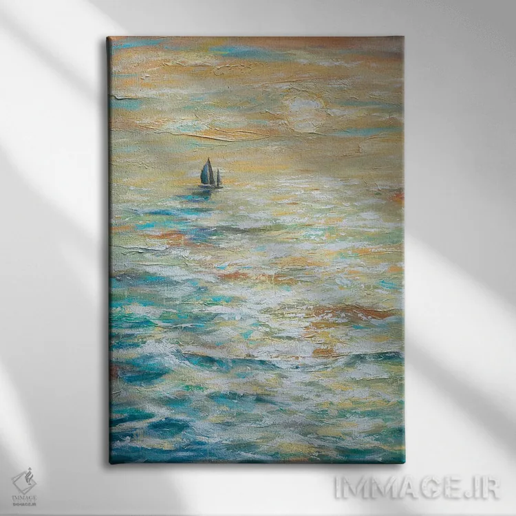 در «قایقرانی به سمت غروب» اثرِ «لیندا اولسن»، ریتم بصری به چشم میآید؛ مناسب برای دیوار شاخص کنار مبلمان ساده.