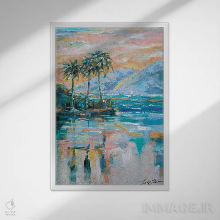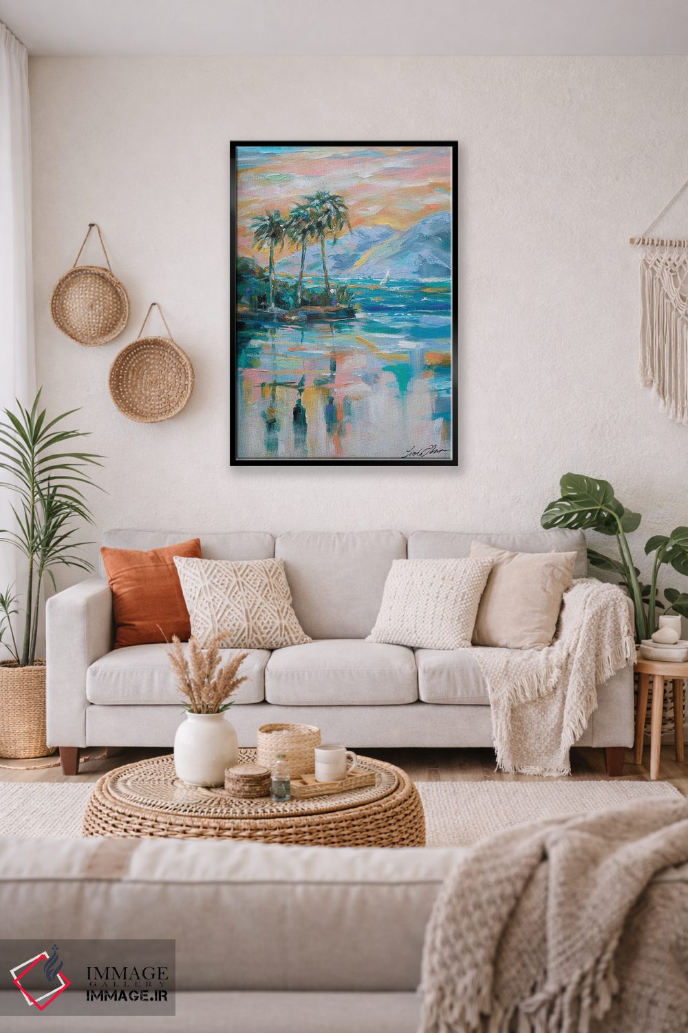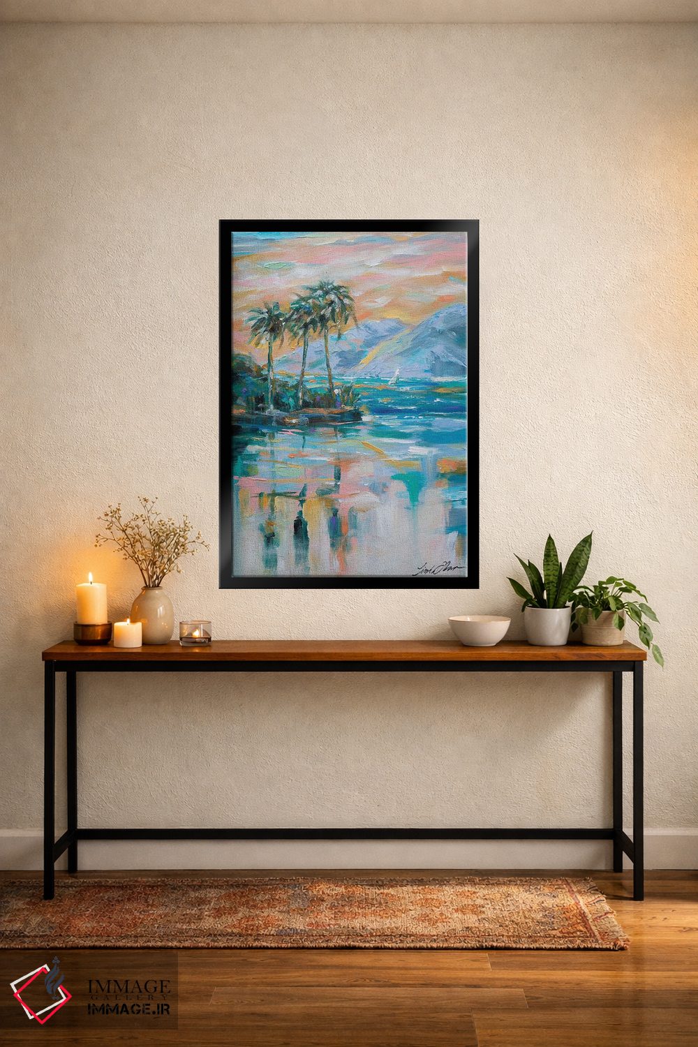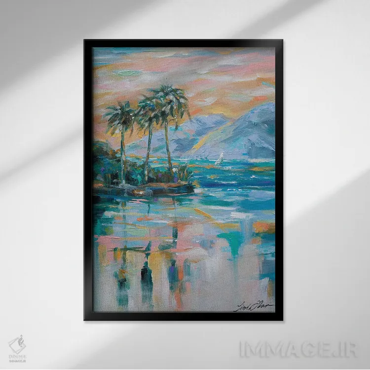براساس پالت ترکیبی اثر، قاب تیک گرم (چوبی) پیشنهاد اول است و مشکی مات (فریم متوسط) مکمل. برای سفارشهای پروژهای با ابعاد و قابهای اختصاصی با ایماژ در تماس باشید.