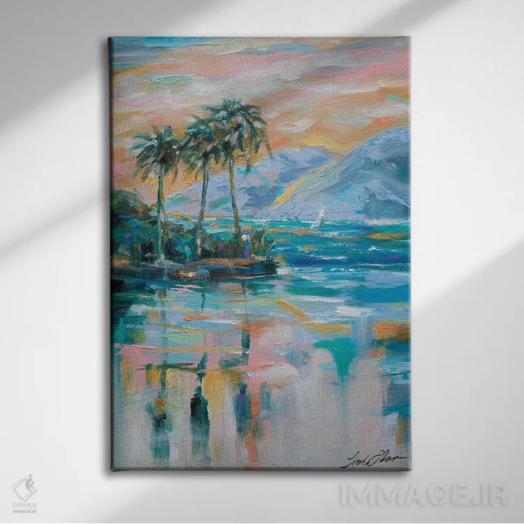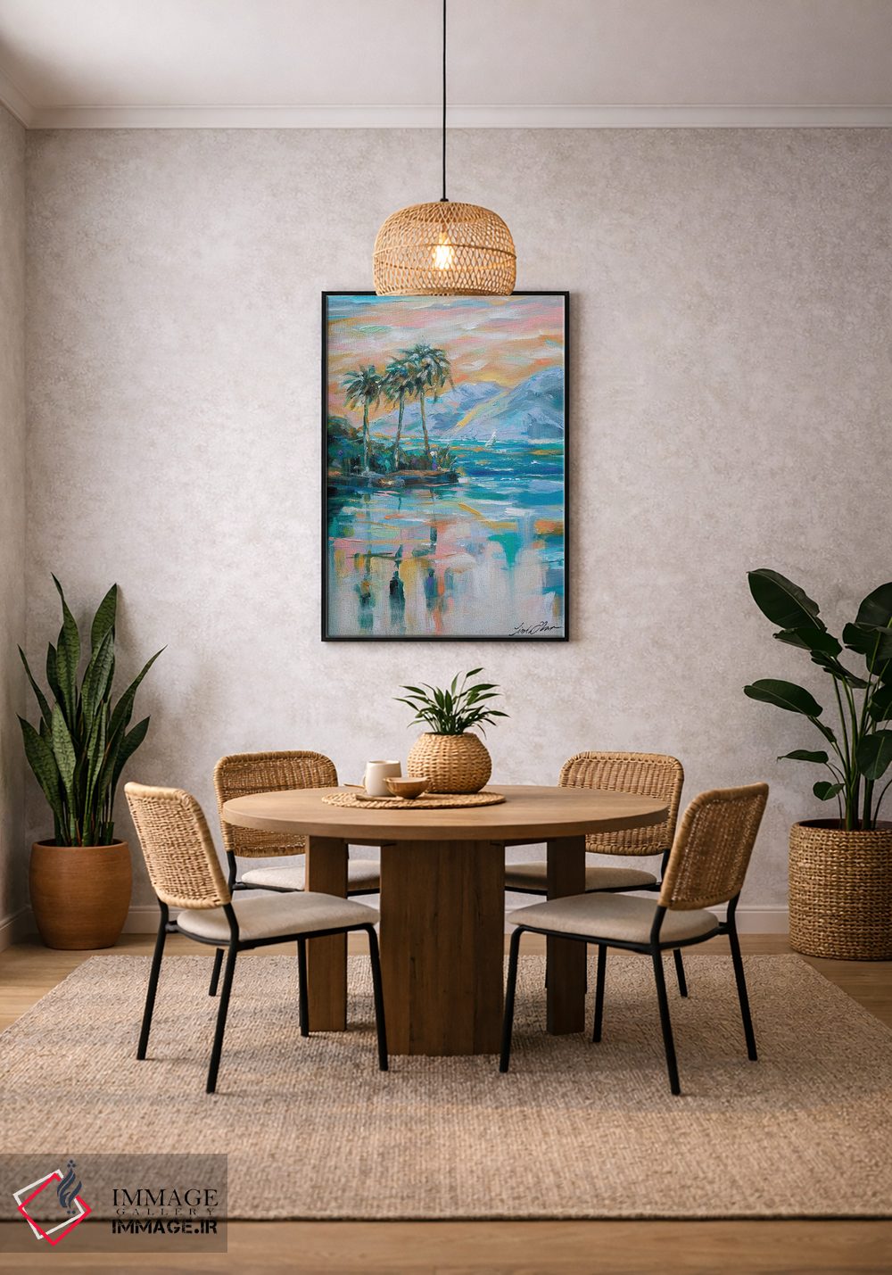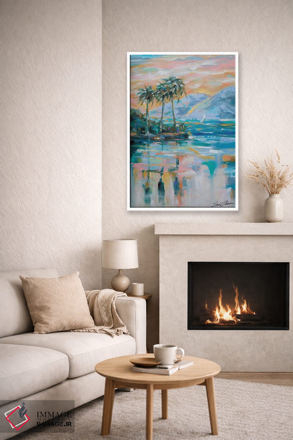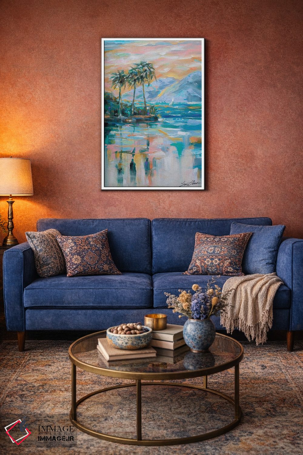 براساس پالت ترکیبی اثر، قاب تیک گرم (چوبی) پیشنهاد اول است و مشکی مات (فریم متوسط) مکمل. برای سفارشهای پروژهای با ابعاد و قابهای اختصاصی با ایماژ در تماس باشید.