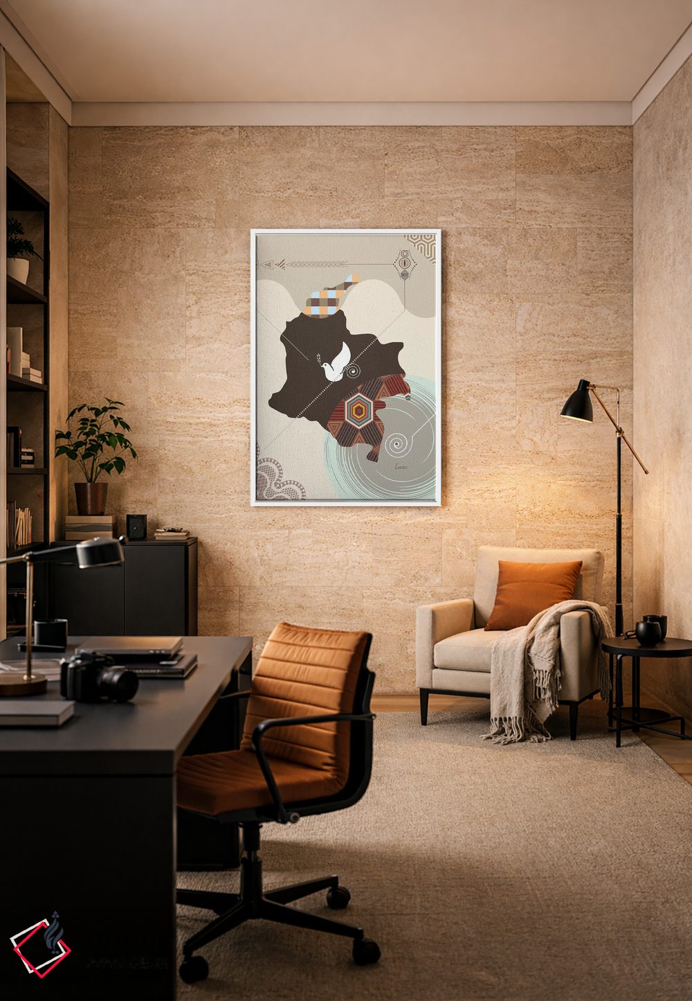«"کلمبیا (استیلیزه شده)"» اثرِ «لانره استودیو (استودیو هنری)» با موضوعِ این اثر، به چیدمان رنگی فضا کمک میکند و حس پرداختِ هنری را هم حفظ میکند.