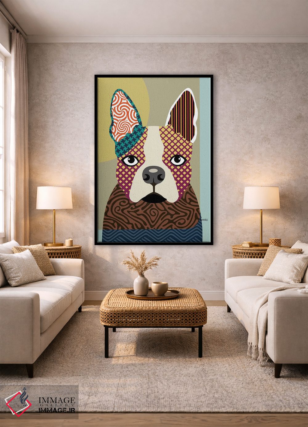 براساس پالت ترکیبی اثر، قاب تیک گرم (چوبی) پیشنهاد اول است و مشکی مات (فریم متوسط) مکمل. برای سفارشهای پروژهای با ابعاد و قابهای اختصاصی با ایماژ در تماس باشید.