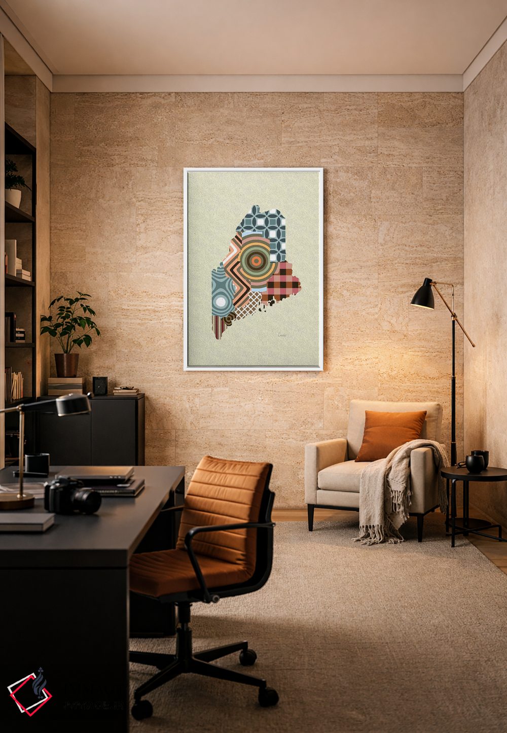 این تابلو تزئینی با موضوعِ این اثر برای هدیه و دکورهای روشن همیشه جواب میدهد: «"ایالت مین"» اثرِ «لانره استودیو (استودیو هنری)».
