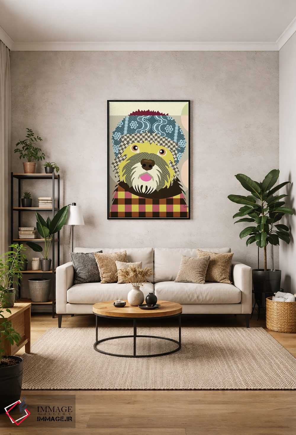اگر میخواهید دیوار کمی سرزندگیِ محترمانه داشته باشد، «"دندی باورموت تریر"» اثرِ «لانره استودیو (استودیو هنری)» بافت و جزئیات را طوری نشان میدهد که نگاه میماند، برای دیوار کنار میز کار گزینهٔ مناسبیست. با قاب چوبی یا مشکی، حس مرتبتری پیدا میکند.