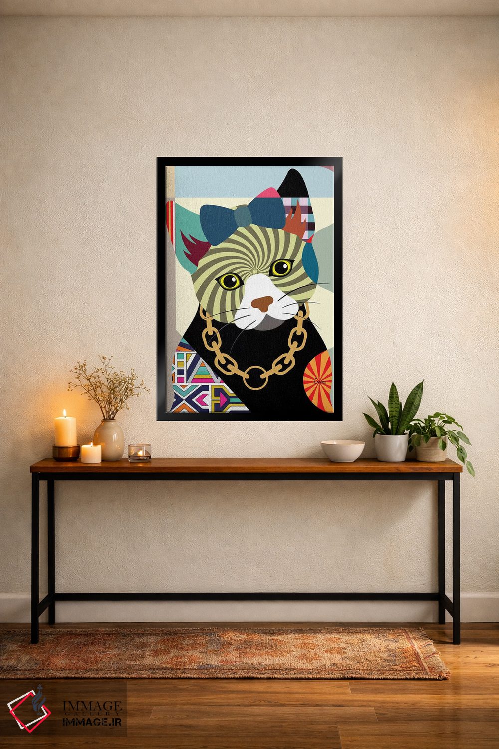 اگر به آثار حیوانات علاقه دارید، «"گربه هیپستر"» اثرِ «لانره استودیو (استودیو هنری)» در کنار رنگهای خنثی، تضاد دلچسبی میسازد، برای هدیهدادن به دوستداران حیوانات گزینهٔ مناسبیست. برای دیوار گالریوار هم گزینهٔ خوبیست.