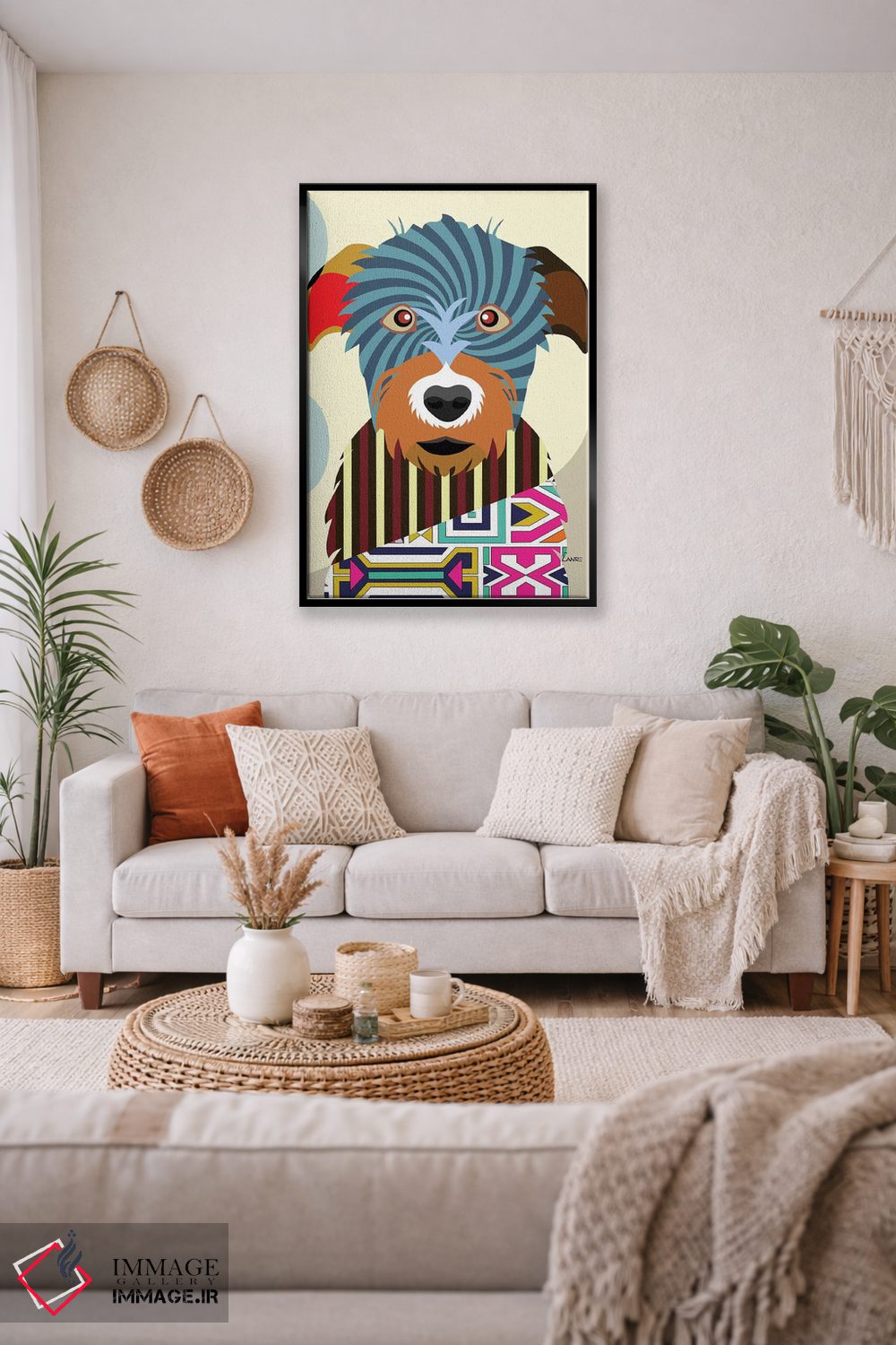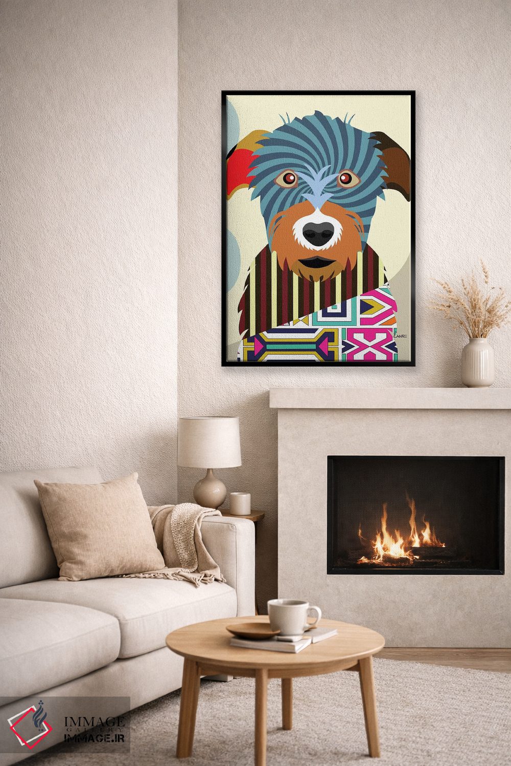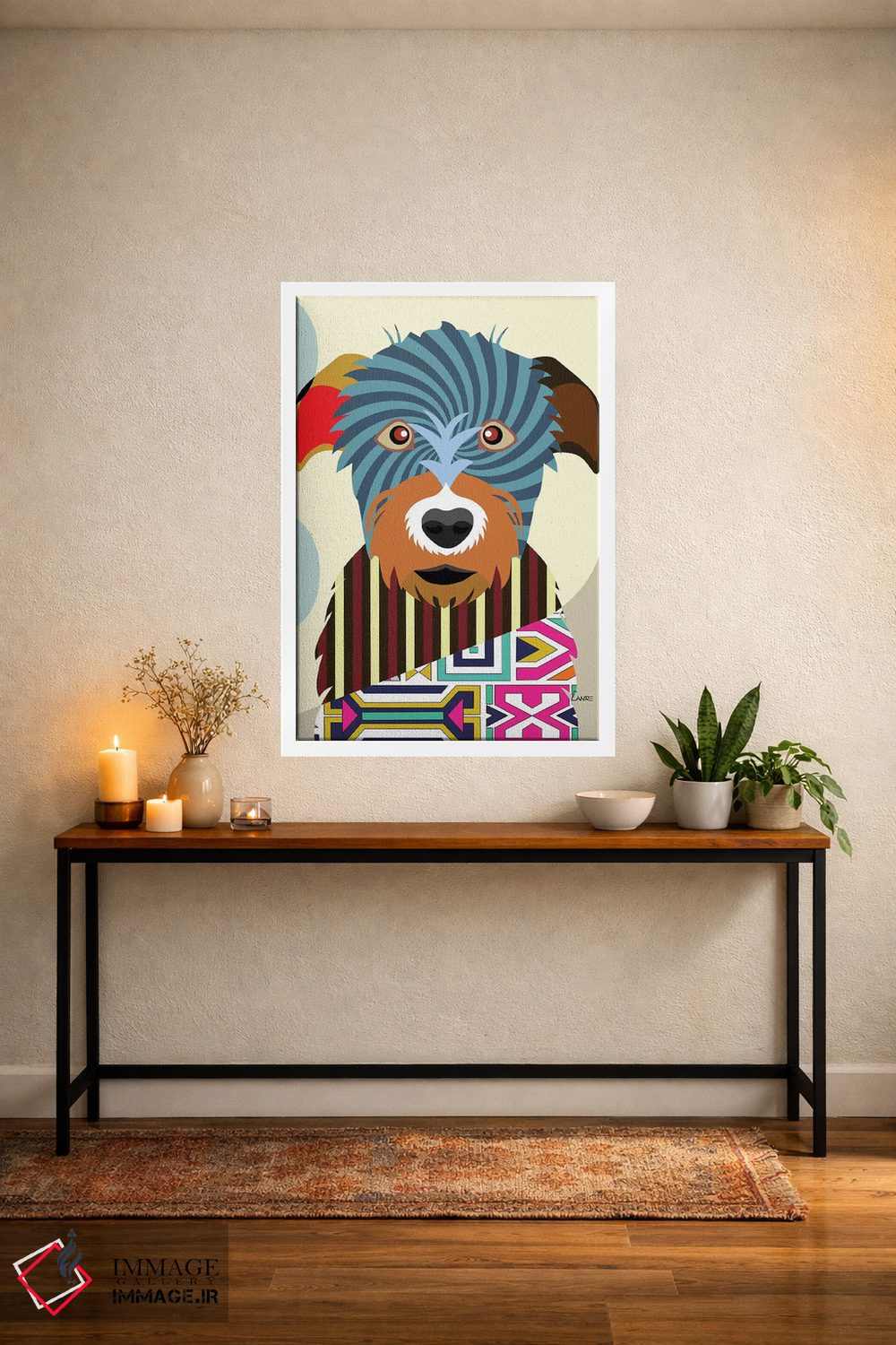 «"گرگنمای ایرلندی"» اثرِ «لانره استودیو (استودیو هنری)» از آن کارهاییست که در کنار رنگهای خنثی، تضاد دلچسبی میسازد؛ برای دکورهای مدرن و مینیمال انتخاب خوبیست. حسش صمیمی است، اما کیفیتش جدی و خوشپرداخت.