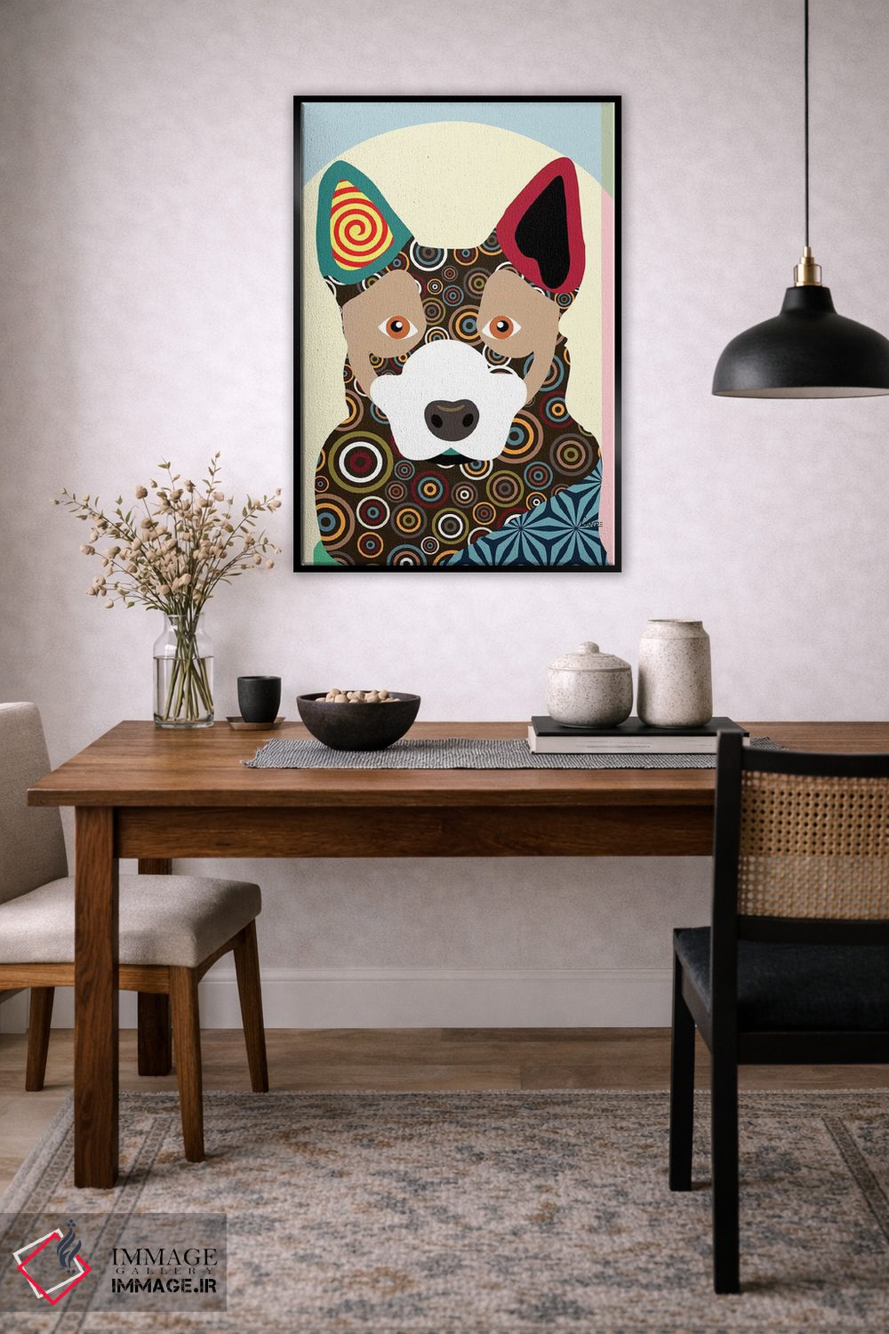 برای دکورهای صمیمی، «گاو استرالیایی» اثرِ «لانره استودیو (استودیو هنری)» فضا را صمیمیتر و دعوتکنندهتر نشان میدهد؛ برای فضاهای روستیک یا بوهو انتخابی خوشسلیقه است. هر بار نگاهش میکنید، یک جزئیات تازه به چشم میآید.