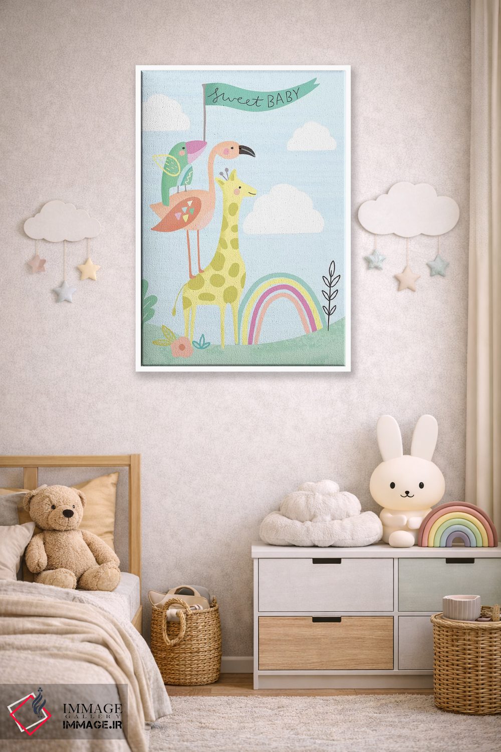 در «"سلام کوچولوی شیرین"» اثرِ «لوییز آلن»، حضور حیوانات به فضا، گرمیِ ملایم اضافه میکند؛ برای فضاهای روستیک یا بوهو انتخابی خوشسلیقه است. برای دیوار گالریوار هم گزینهٔ خوبیست.