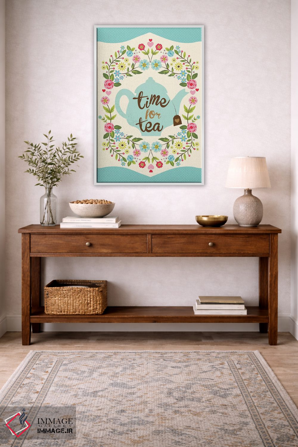 براساس پالت ترکیبی اثر، قاب تیک گرم (چوبی) پیشنهاد اول است و مشکی مات (فریم متوسط) مکمل. برای سفارشهای پروژهای با ابعاد و قابهای اختصاصی با ایماژ در تماس باشید.