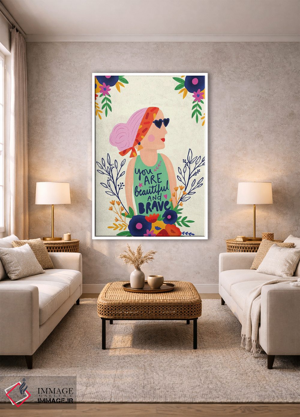 بوم گالری ایماژ نسخهی دکوراتیوِ سطحبالا از یک اثر هنری است. روی کنواس سفیدِ یکدست و بدون اسید با اجرای چاپ هنری جیکلی (Giclée) برای آرتپرینتهای جدی با جوهرهای آرشیویِ حرفهای برای لایههای رنگی خواناتر؛ روی دیوار، کار یکدستتر و خوشکیفیتتر دیده میشود. کلافکشی مرتب و یراق نصب استاندارد، تجربهی نصب را ساده میکند.
