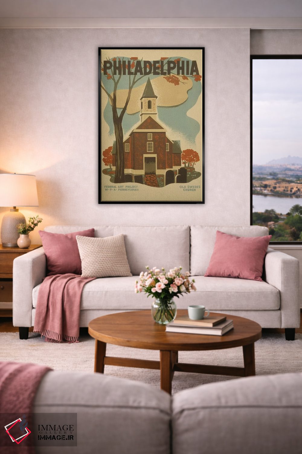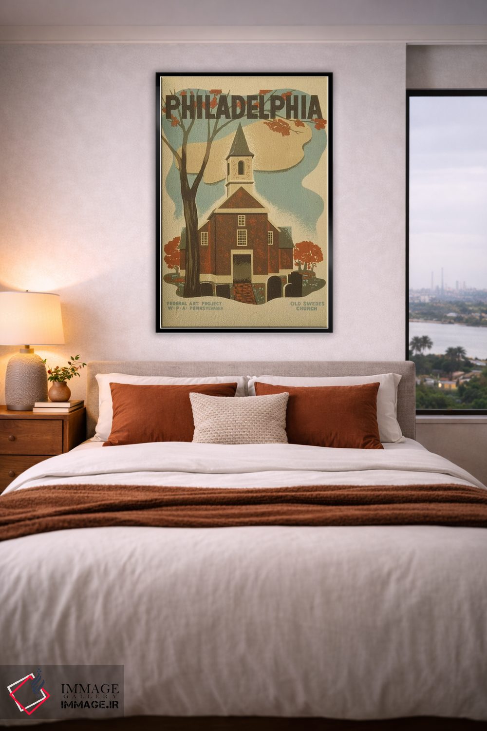 «"فیلادلفیا"» اثرِ «کتابخانه کنگره (آرشیو هنری آمریکا)» بهخاطر ساختار گرافیکیاش، کنار رنگهای خنثی و دکور صنعتی هم خوب جلوه میکند.