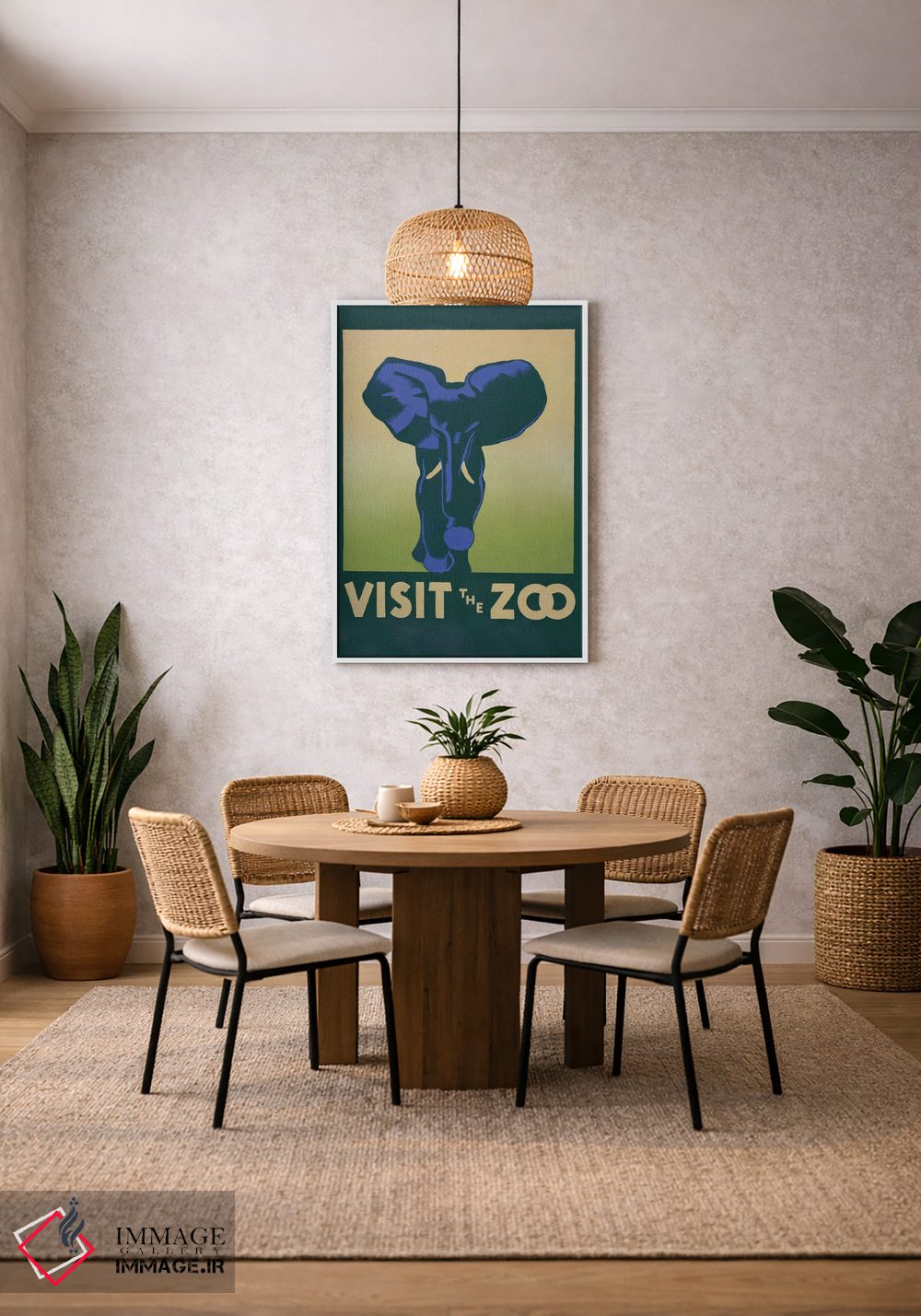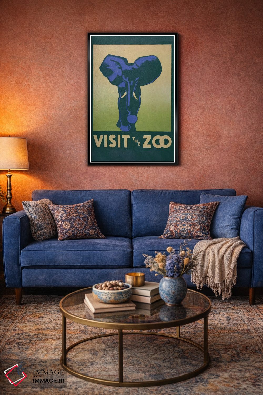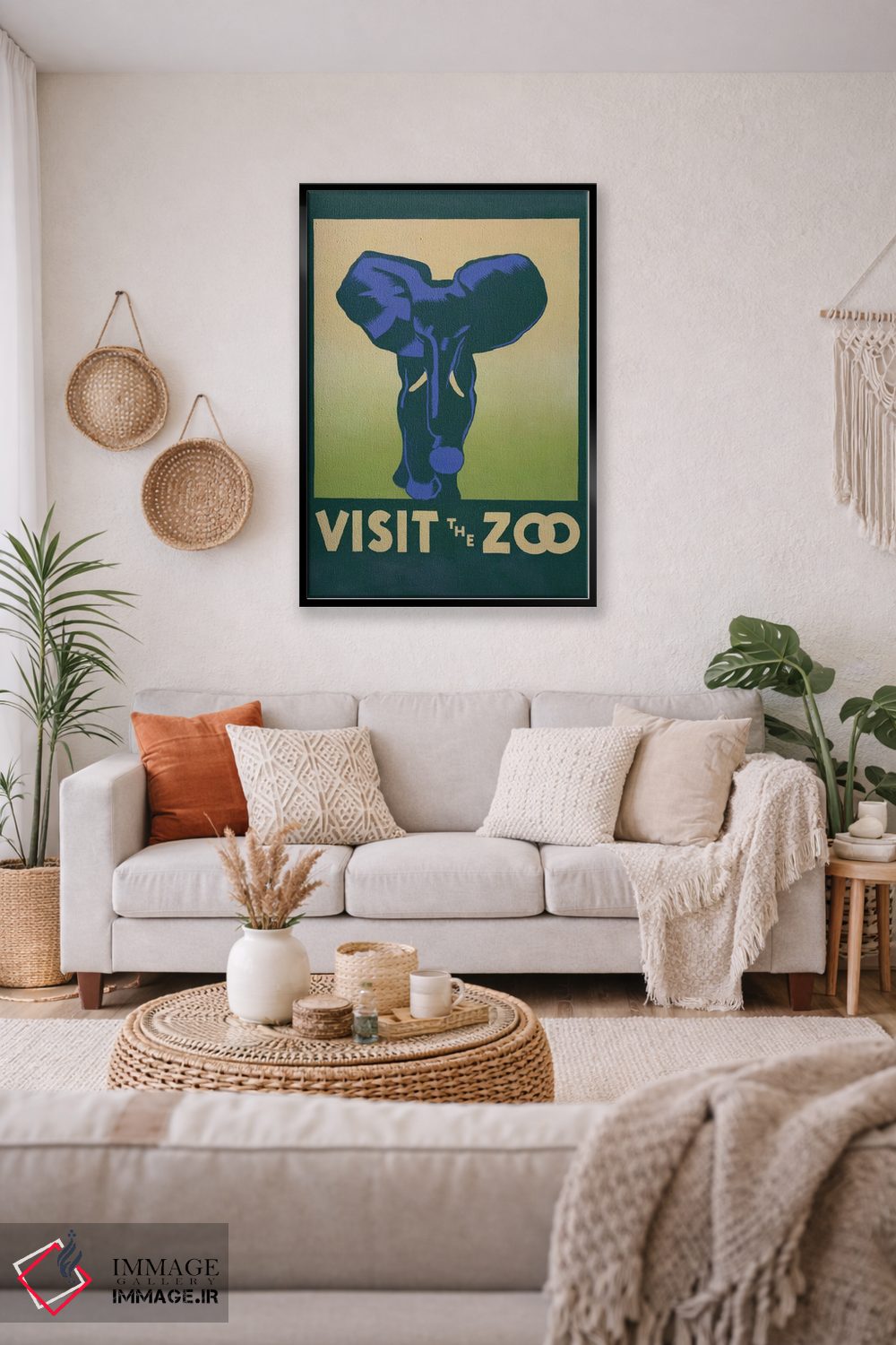«"بازدید از باغوحش (فیل)"» اثرِ «کتابخانه کنگره (آرشیو هنری آمریکا)» میتواند کنار اکسسوریهای ساده و رنگهای خنثی، یک نقطهی تاکید شاد و قابلکنترل بسازد.