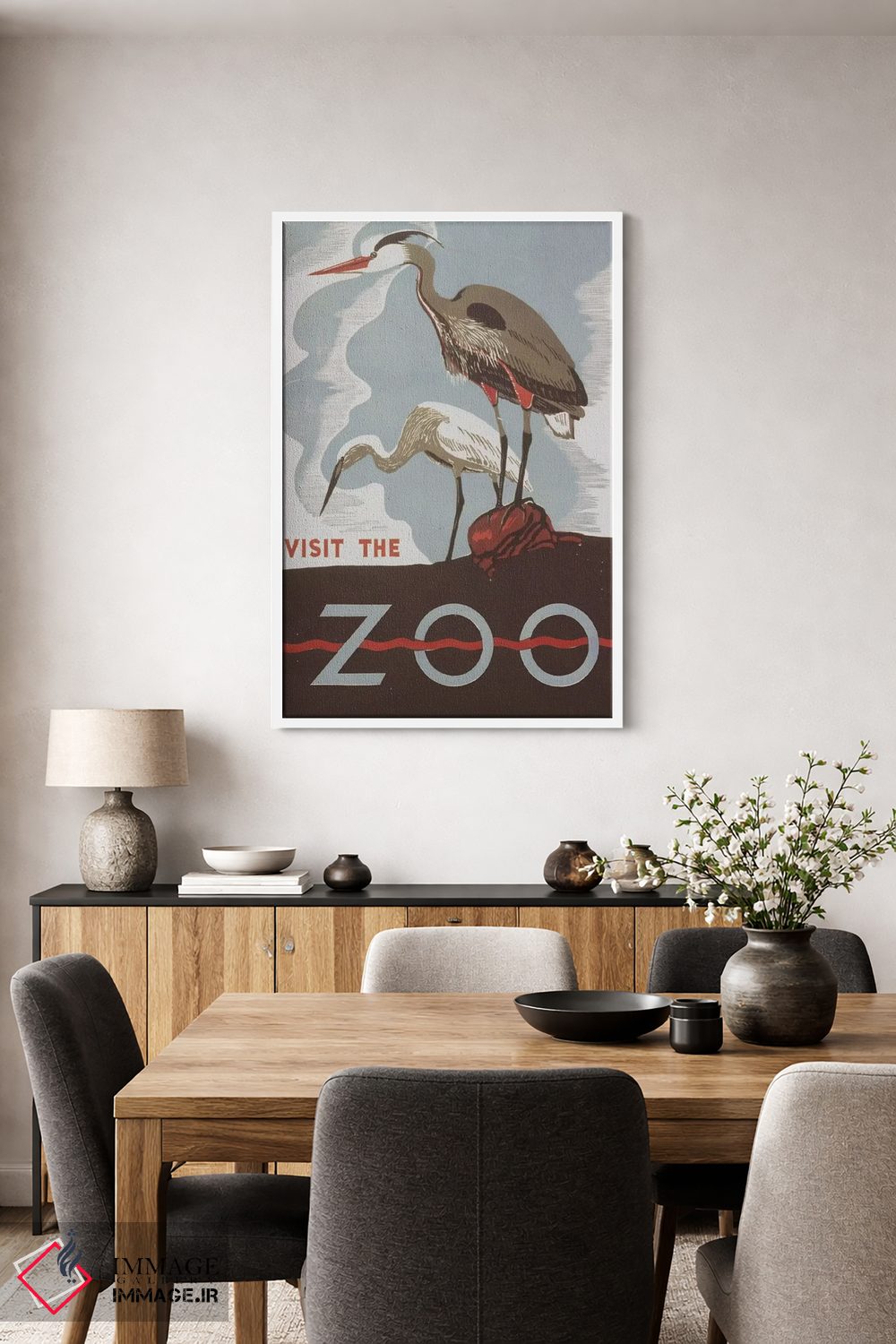 اگر میخواهید دیوار کمی سرزندگیِ محترمانه داشته باشد، «"بازدید از باغوحش (بوتیمارها)"» اثرِ «کتابخانه کنگره (آرشیو هنری آمریکا)» یک لبخند ریز به چیدمان میدهد، برای اتاق بازی یا گوشهٔ مطالعه گزینهٔ مناسبیست. حسش صمیمی است، اما کیفیتش جدی و خوشپرداخت.