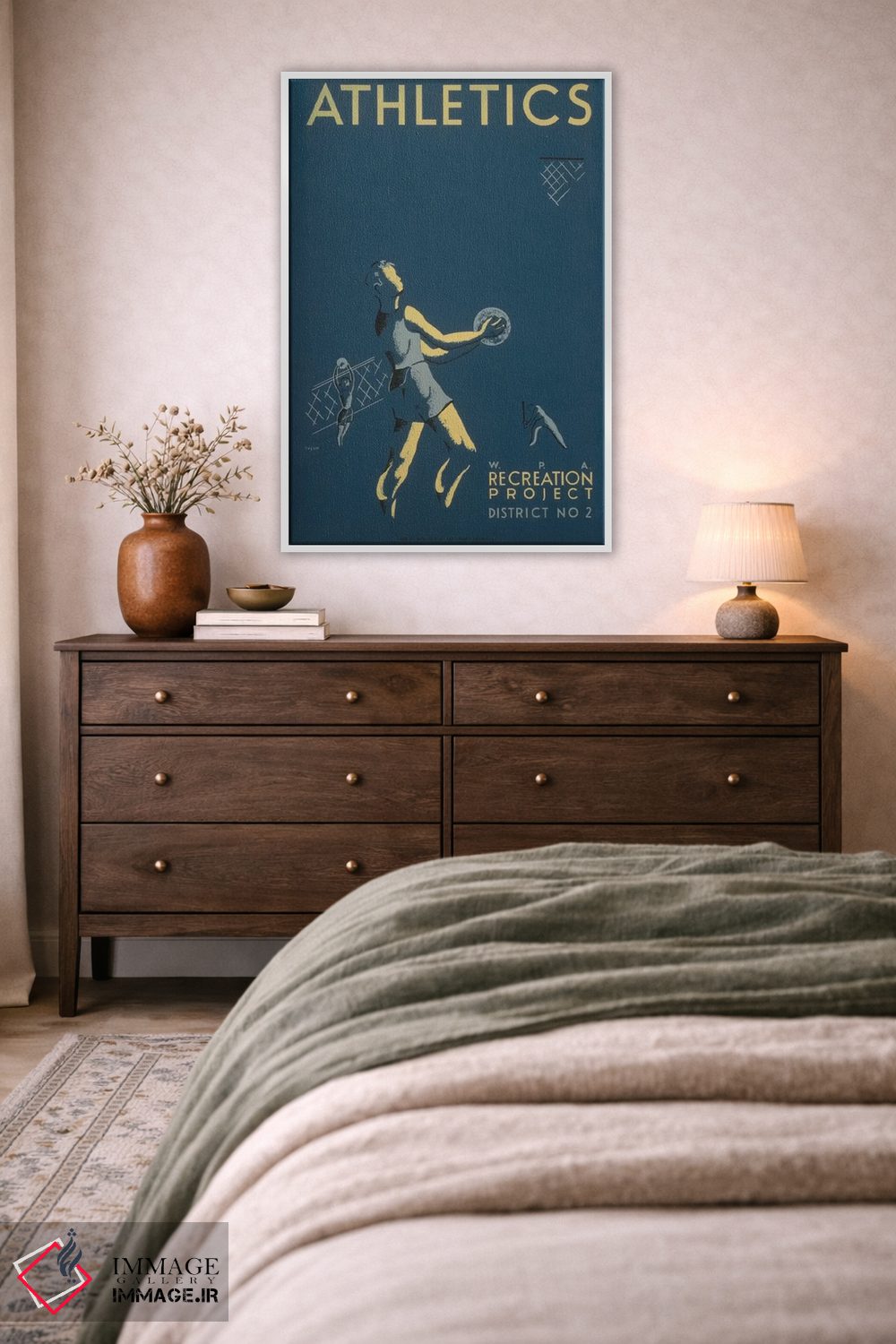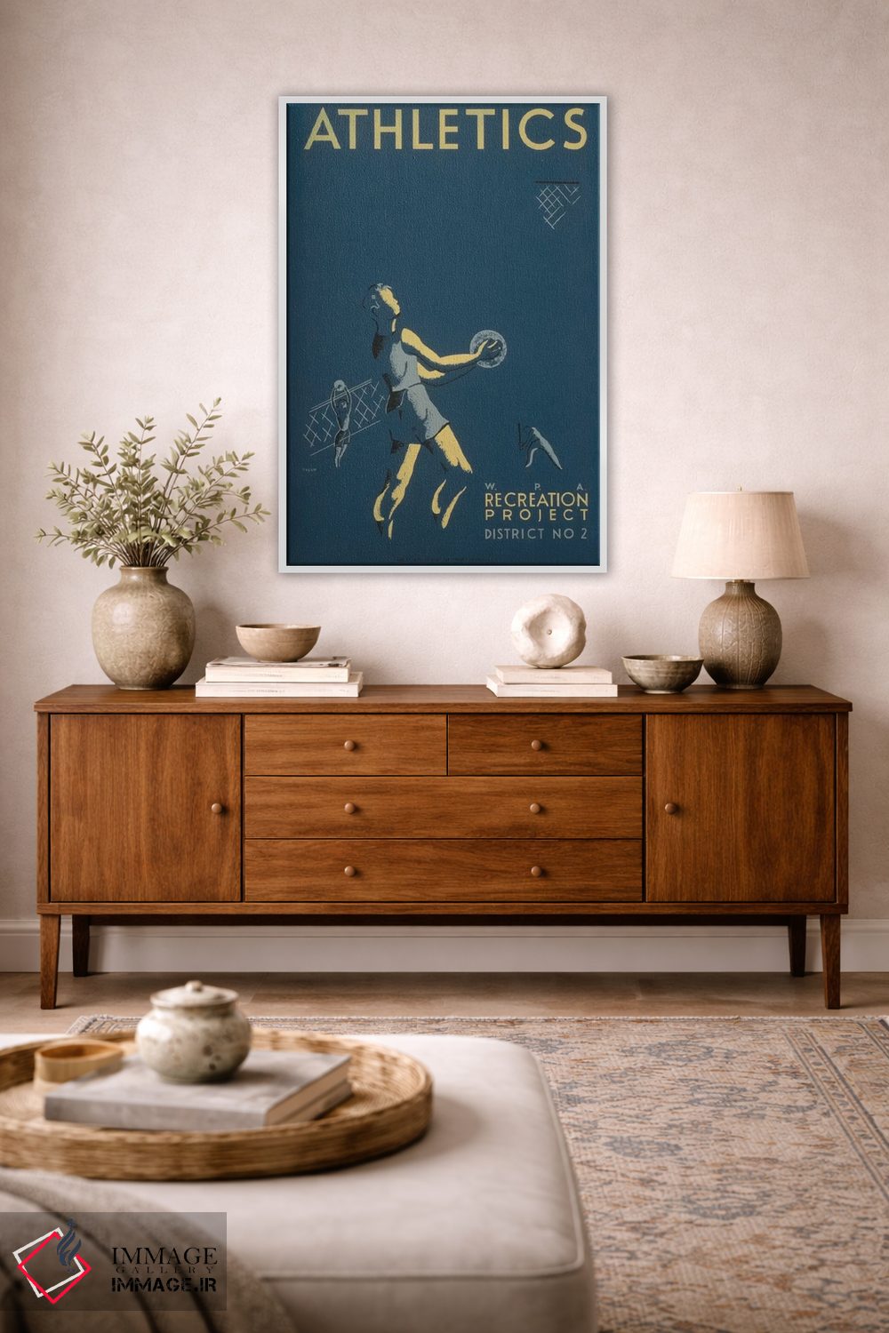 این تابلو با این اثر، کنار دیوارهای خنثی و اکسسوریهای طبیعی خیلی خوب مینشیند اثرِ «کتابخانه کنگره (آرشیو هنری آمریکا)».