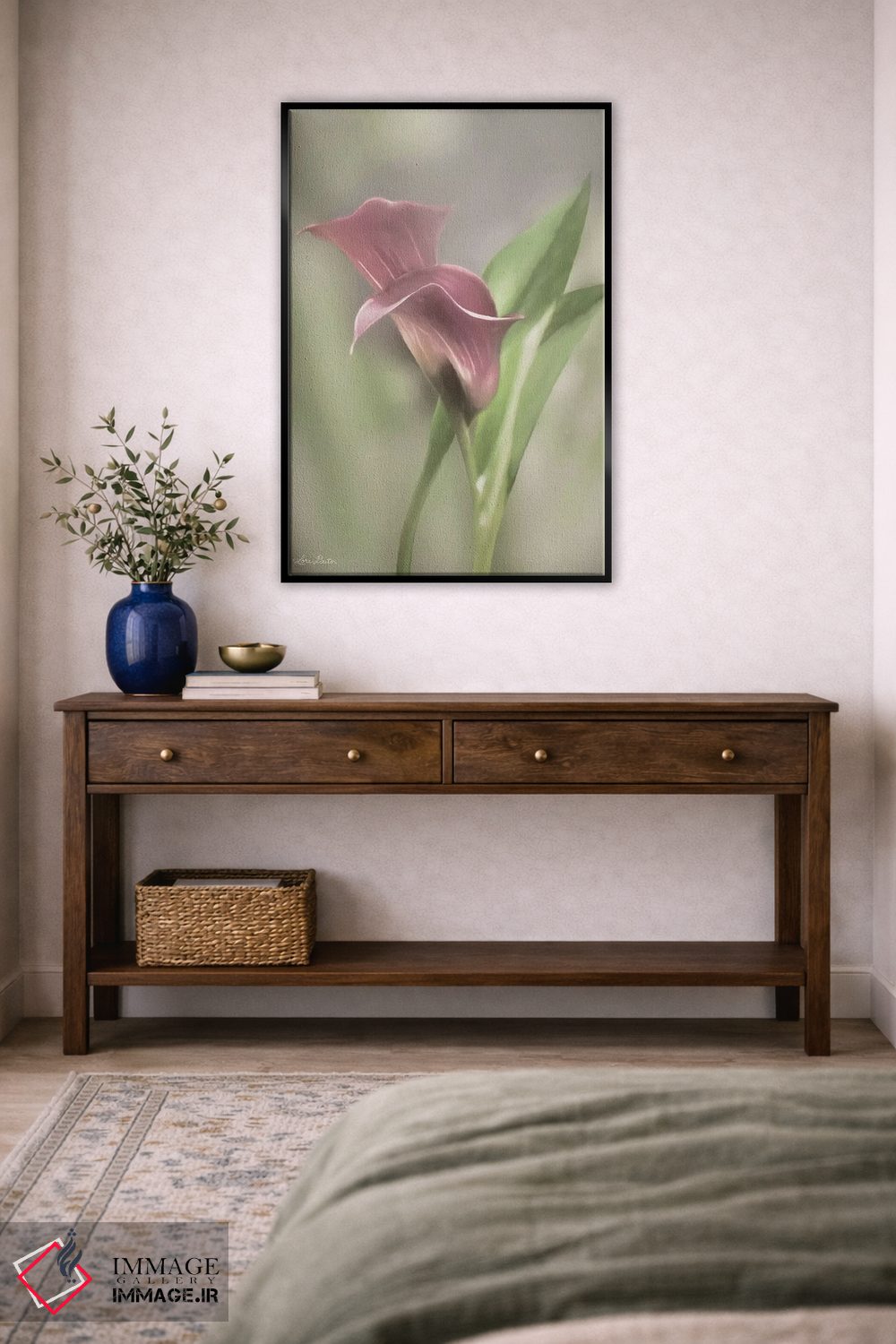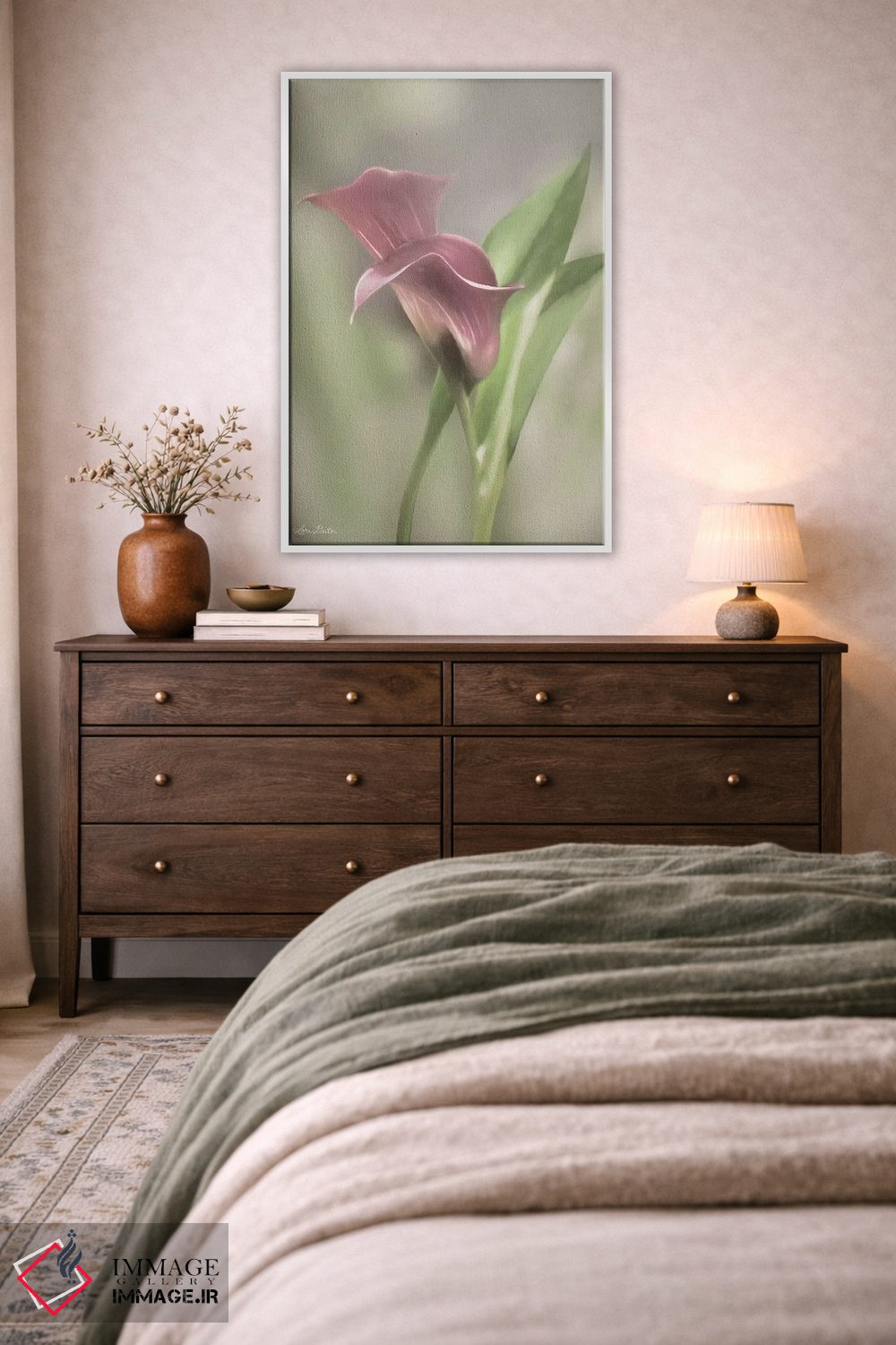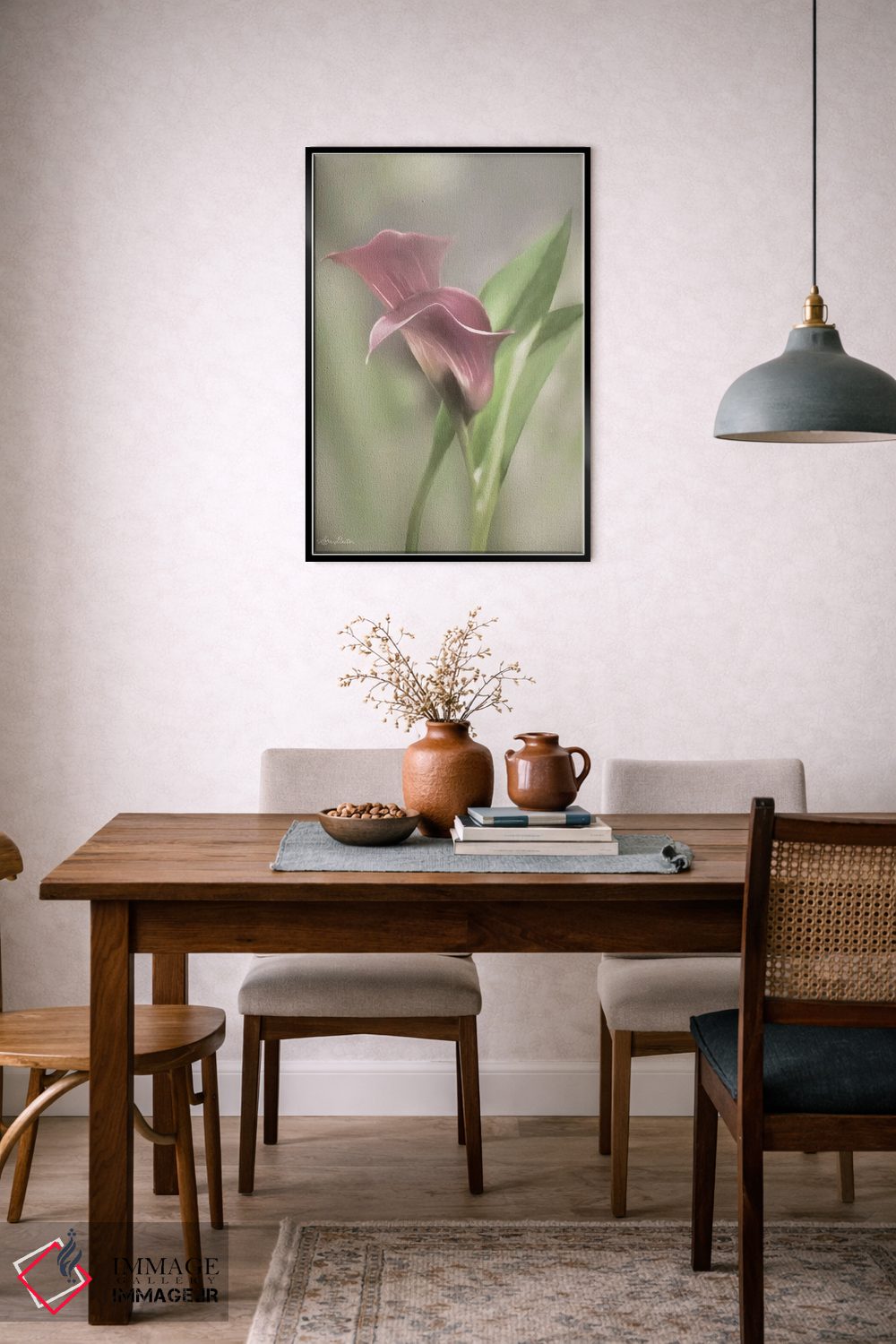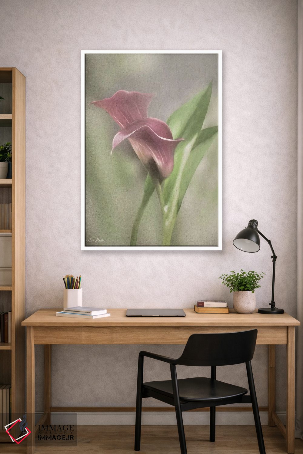 «گل کالای صورتی» اثرِ «لری دیتِر» با ریتمِ بصریِ منظم و لطیف، میتواند بهخوبی کنار مبلمان ساده و رنگهای خنثی بنشیند.