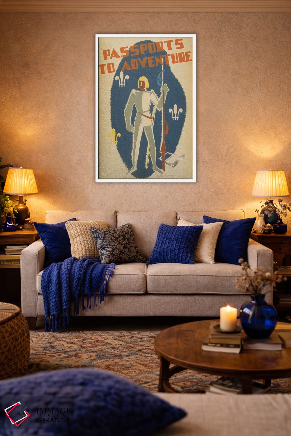 «"گذرنامه به ماجراجویی"» اثرِ «کتابخانه کنگره (آرشیو هنری آمریکا)» انتخابی مناسب برای کسانیست که از پوسترهای متنی و طراحی معاصر لذت میبرند.