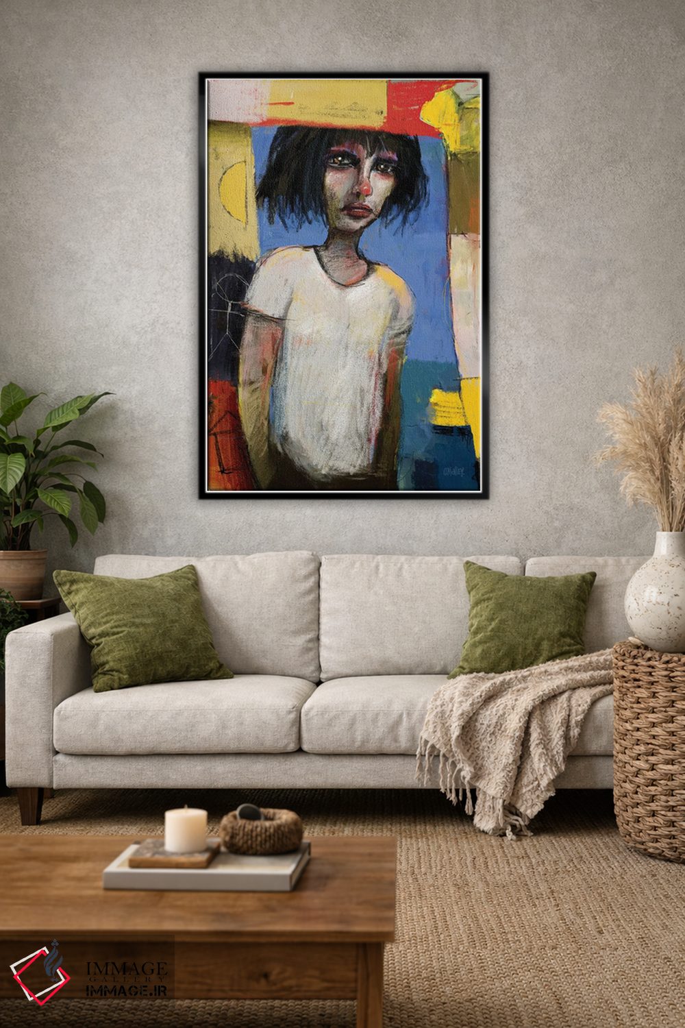 براساس پالت ترکیبی اثر، قاب تیک گرم (چوبی) پیشنهاد اول است و مشکی مات (فریم متوسط) مکمل. برای سفارشهای پروژهای با ابعاد و قابهای اختصاصی با ایماژ در تماس باشید.