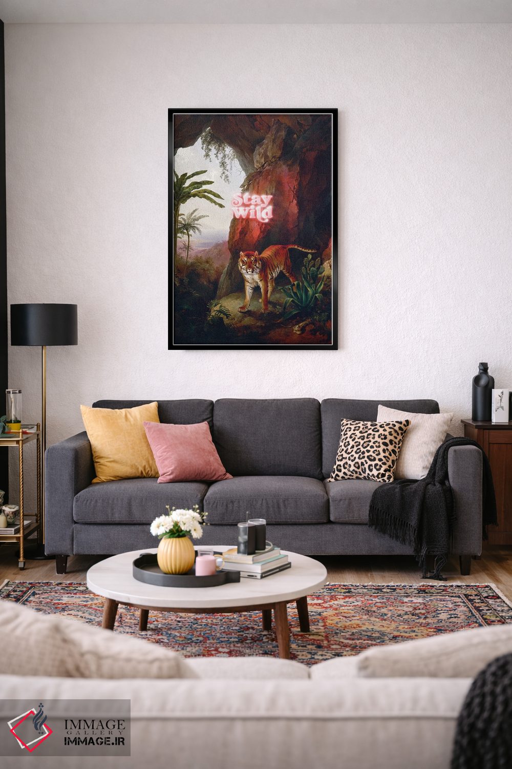 ساختار بوم گالری ایماژ طوری است که اثر روی دیوار «پرداختشده» و حرفهای دیده شود—نه پرزرقوبرقِ بیپایه؛ بلکه دقیق و خوشپرداخت. با بافت ظریف کنواس، حس اثر هنری را در نگاه نزدیک نگه میدارد بدون اغراق؛ فقط دقیقتر. در ارائهی آماده نصب، برای یک ارائهی حرفهای ضروری است بهخصوص وقتی نور موضعی ملایم داشته باشید. حاصل کار، یک تابلو خوشنشین است که هم از دور اثرگذار است و هم از نزدیک خوشخوان؛ برای هدیهی هنری هم انتخاب محترمانهای است.