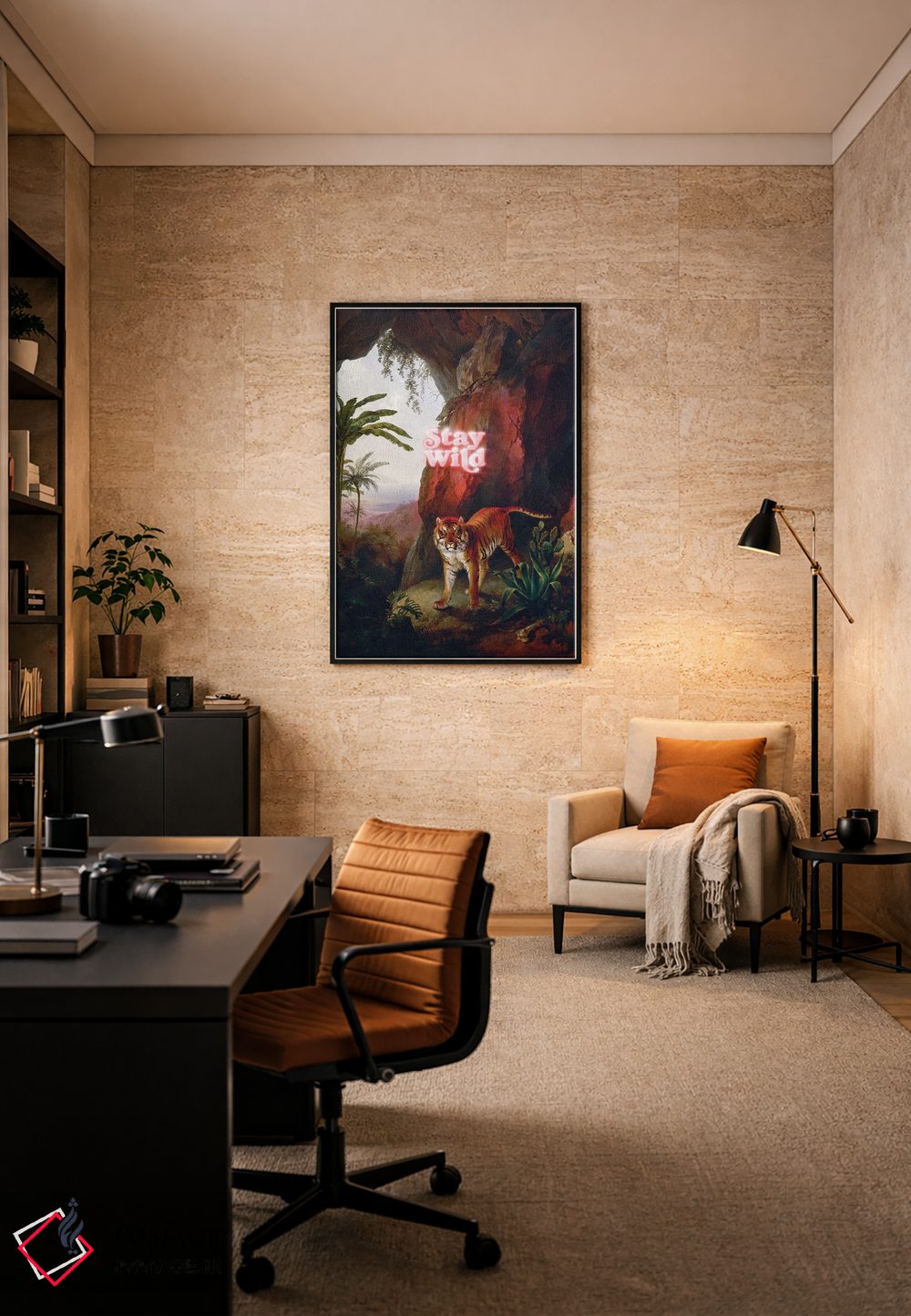 «"وحشی بمان"» اثرِ «یوناس لوس» میتواند در کنار رنگهای خنثی، تضاد دلچسبی بسازد؛ برای کافههای کوچک و صمیمی پیشنهاد میشود. با نورپردازی نقطهای، جذابتر هم میشود.