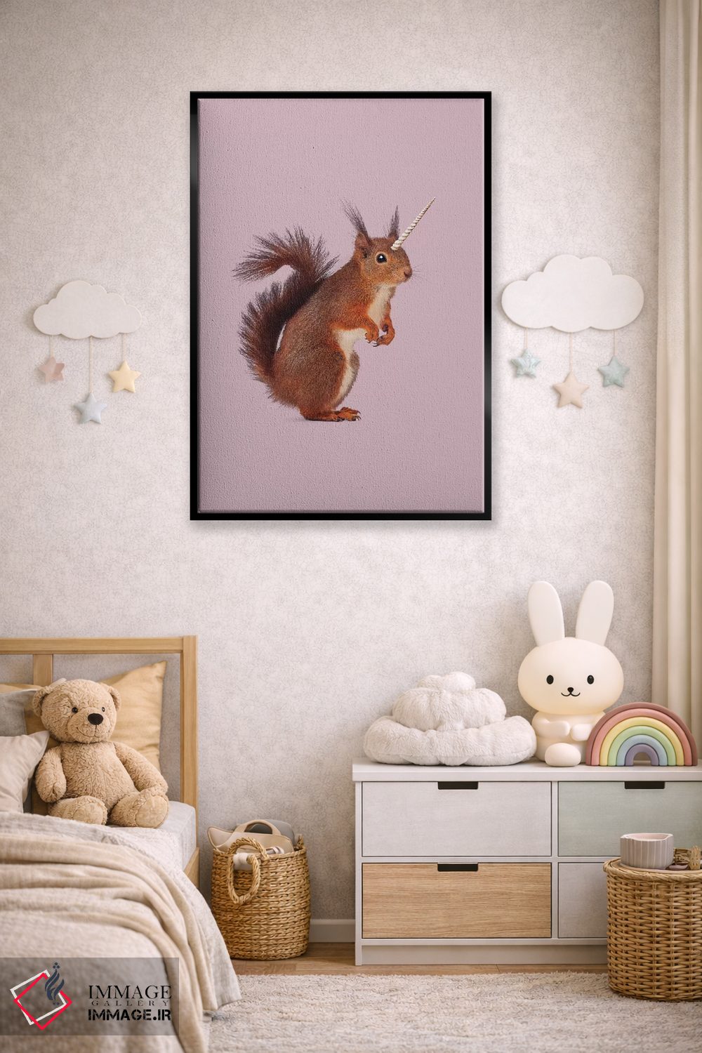 برای دکورهای صمیمی، «"سنجابک (به زبان آلمانی)"» اثرِ «یوناس لوس» مثل یک امضای بامزه اما متین عمل میکند؛ برای هدیهدادن به دوستداران حیوانات انتخابی خوشسلیقه است. با قاب چوبی یا مشکی، حس مرتبتری پیدا میکند.