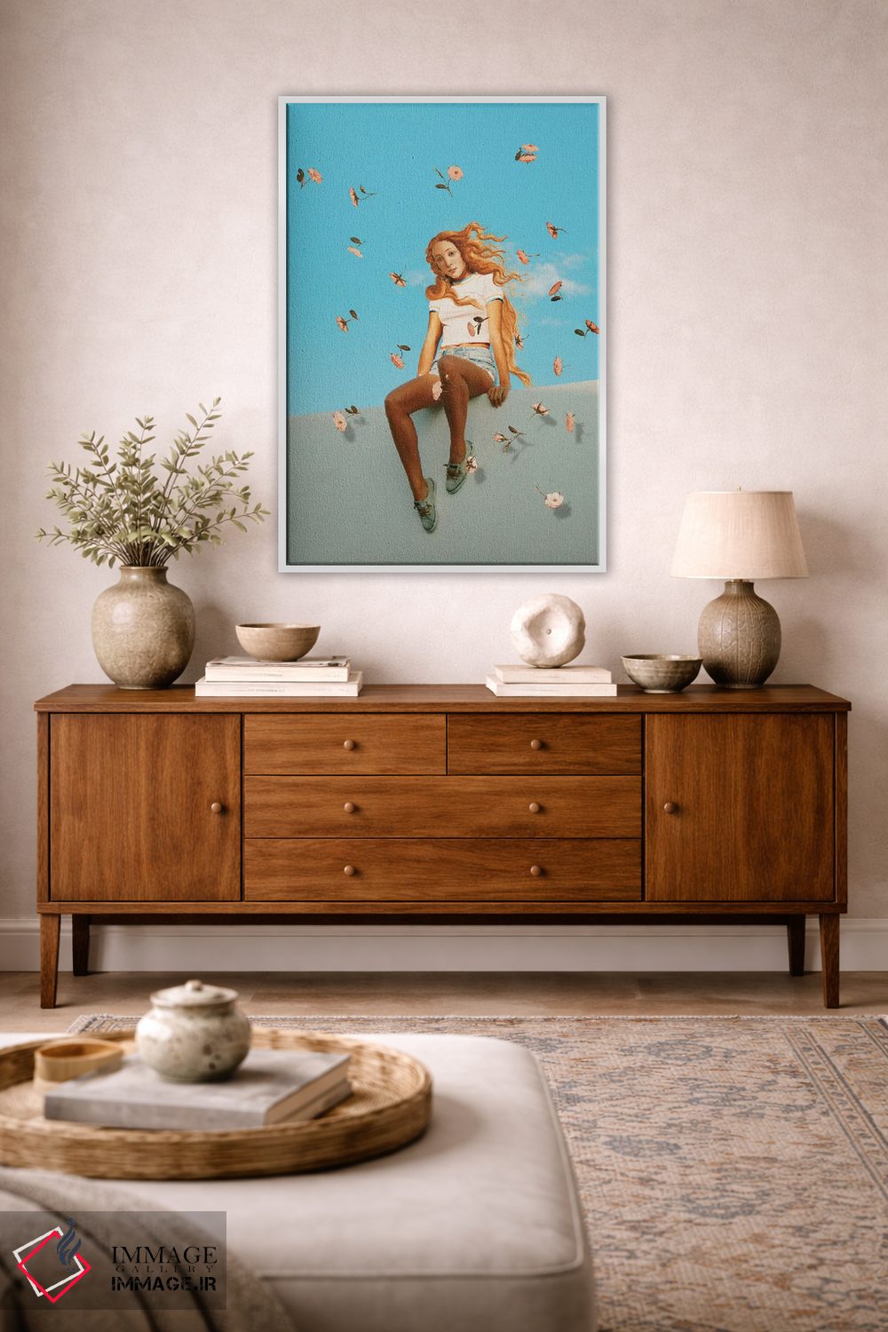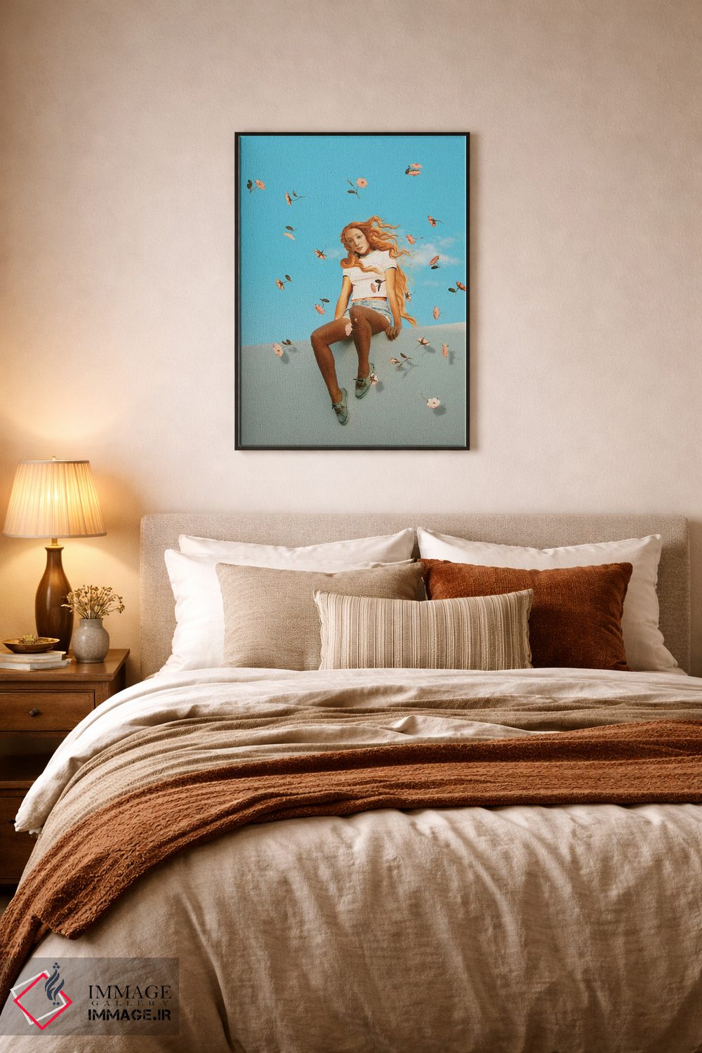 براساس پالت ترکیبی اثر، قاب تیک گرم (چوبی) پیشنهاد اول است و مشکی مات (فریم متوسط) مکمل. برای سفارشهای پروژهای با ابعاد و قابهای اختصاصی با ایماژ در تماس باشید.