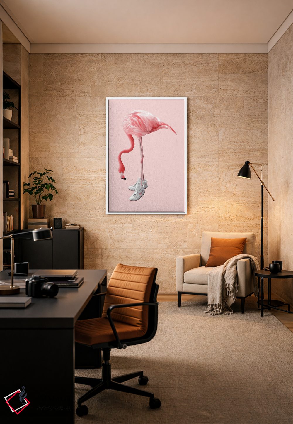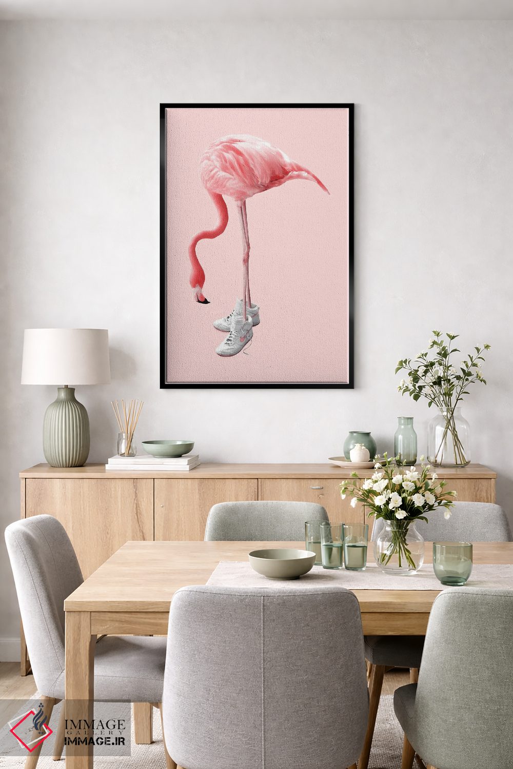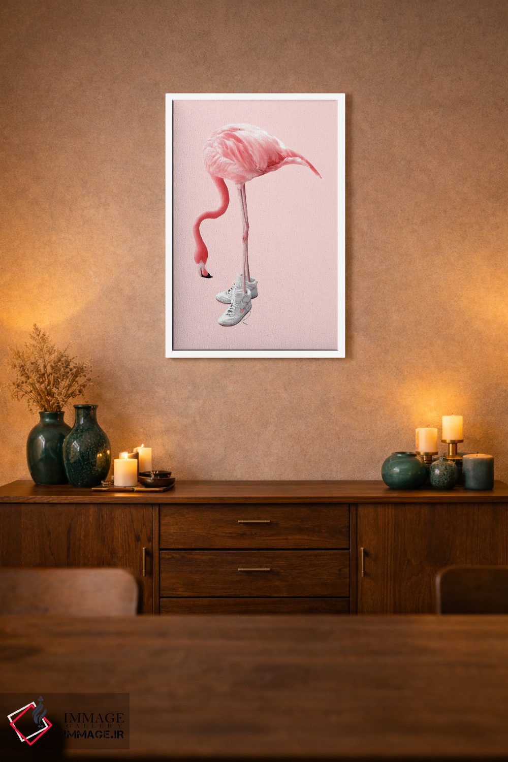 اگر به آثار حیوانات علاقه دارید، «"فلامینگوی کفش کتانی"» اثرِ «یوناس لوس» به فضا، گرمیِ ملایم اضافه میکند، برای فضاهای روستیک یا بوهو گزینهٔ مناسبیست. حسش صمیمی است، اما کیفیتش جدی و خوشپرداخت.