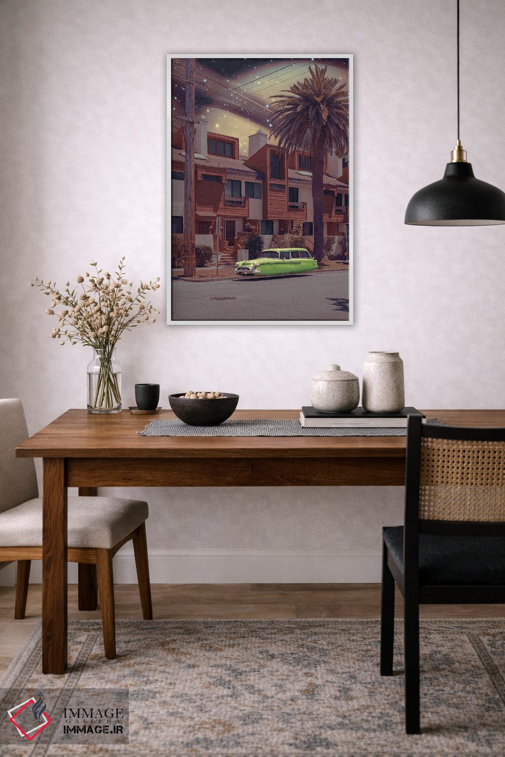 بوم گالری ایماژ طوری طراحی شده که اثر روی دیوار «پرداختشده» و حرفهای دیده شود—نه پرزرقوبرقِ بیپایه؛ بلکه دقیق و خوشپرداخت. بافت ظریف کنواس کمک میکند حس اثر هنری را در نگاه نزدیک نگه میدارد و در دکورهای مدرن و مینیمال خیلی خوب مینشیند. با چاپ جیکلی (Giclée)، برای آرتپرینتهای جدی استاندارد رایج است بدون اغراق؛ فقط دقیقتر. برای سفارش اندازه یا قاب متفاوت، تیم ایماژ راهنمایی میکند تا انتخاب نهایی هماهنگتر باشد؛ و اگر بخواهید، میتوان چیدمان را برای گالریوال هم پیشنهاد داد.