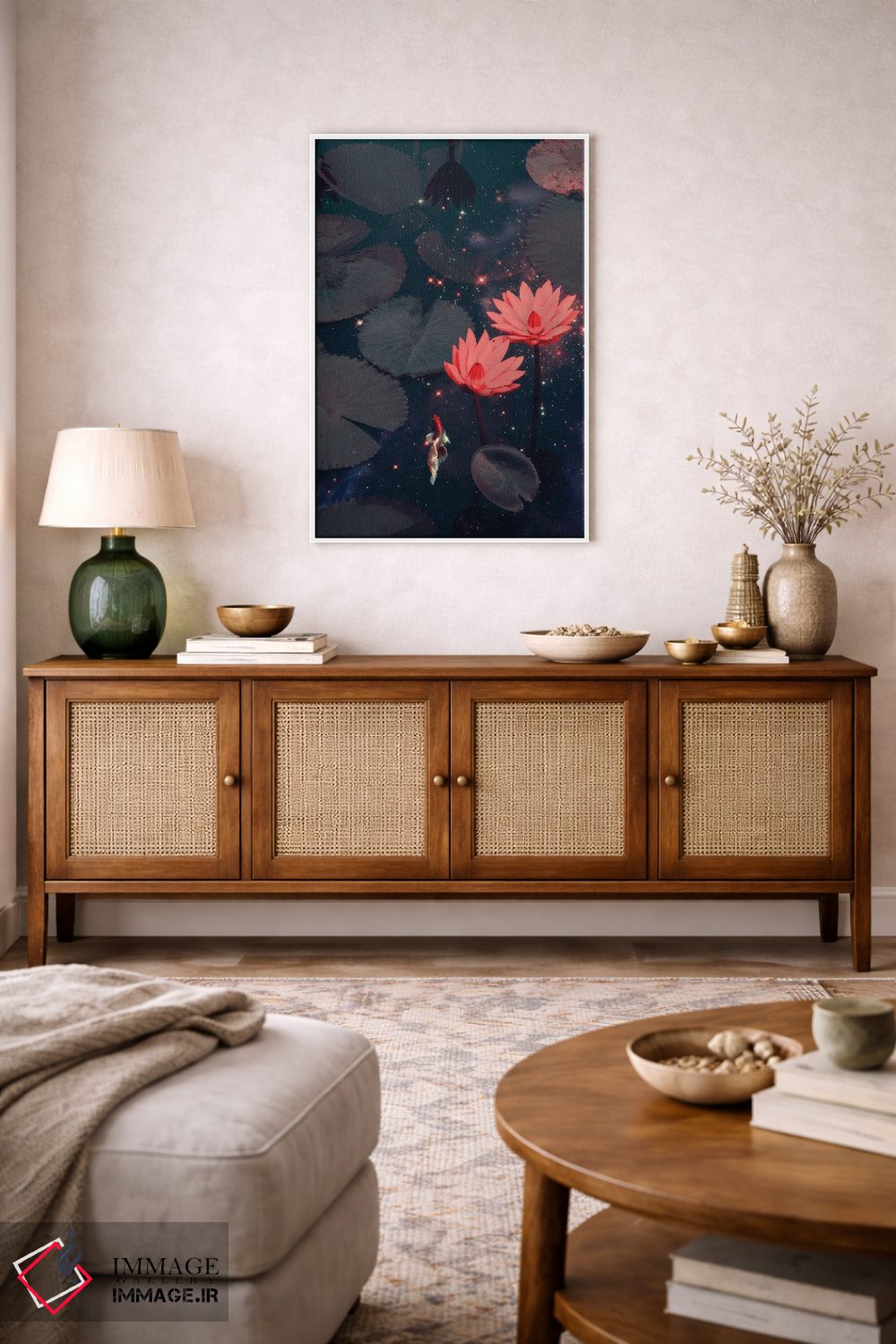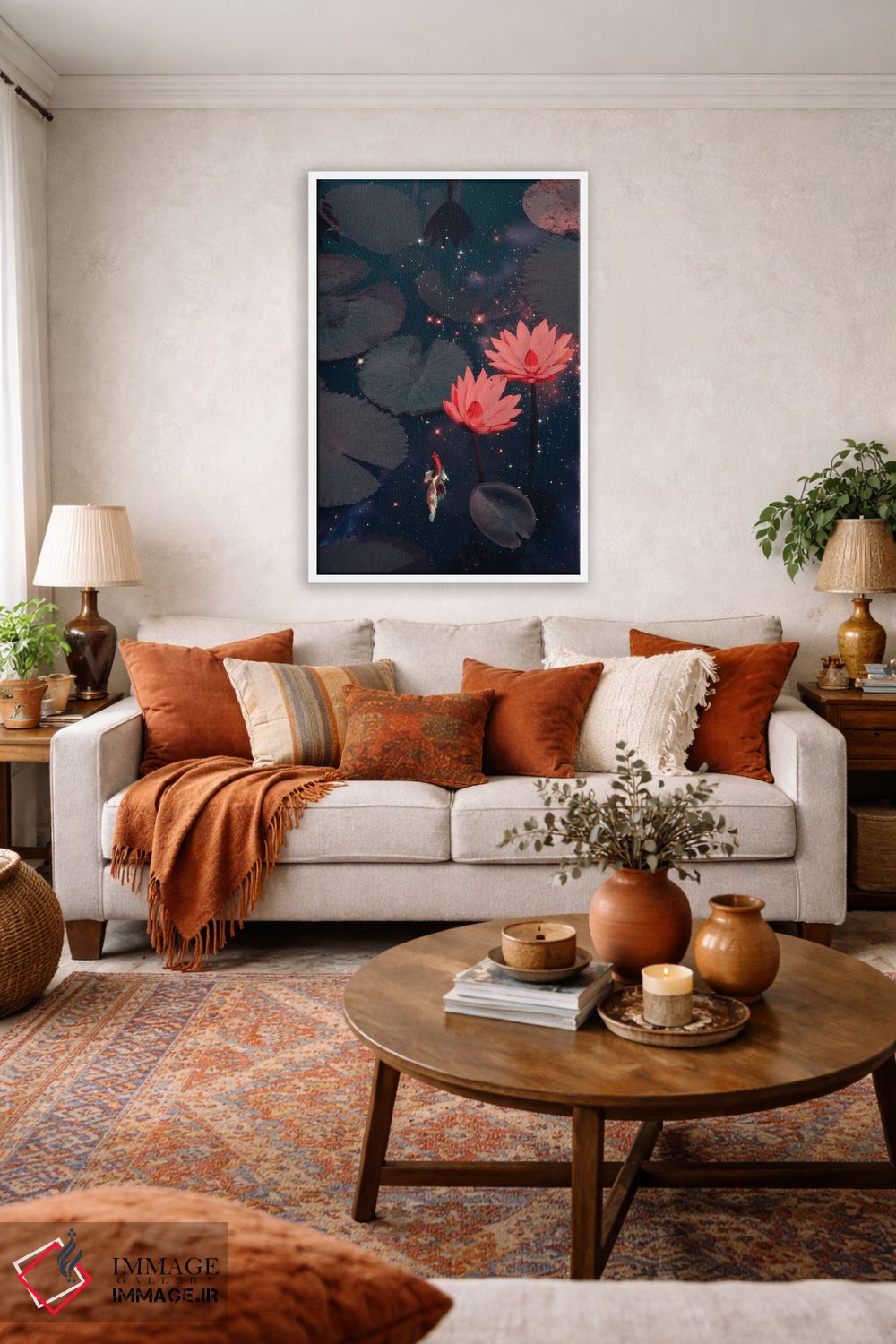 این تصویر دیواری با موضوعِ این اثر و حس پرداختِ هنری، برای فضاهای پذیرایی و اتاق خواب همزمان مناسب است—بیسروصدا اما تاثیرگذار.