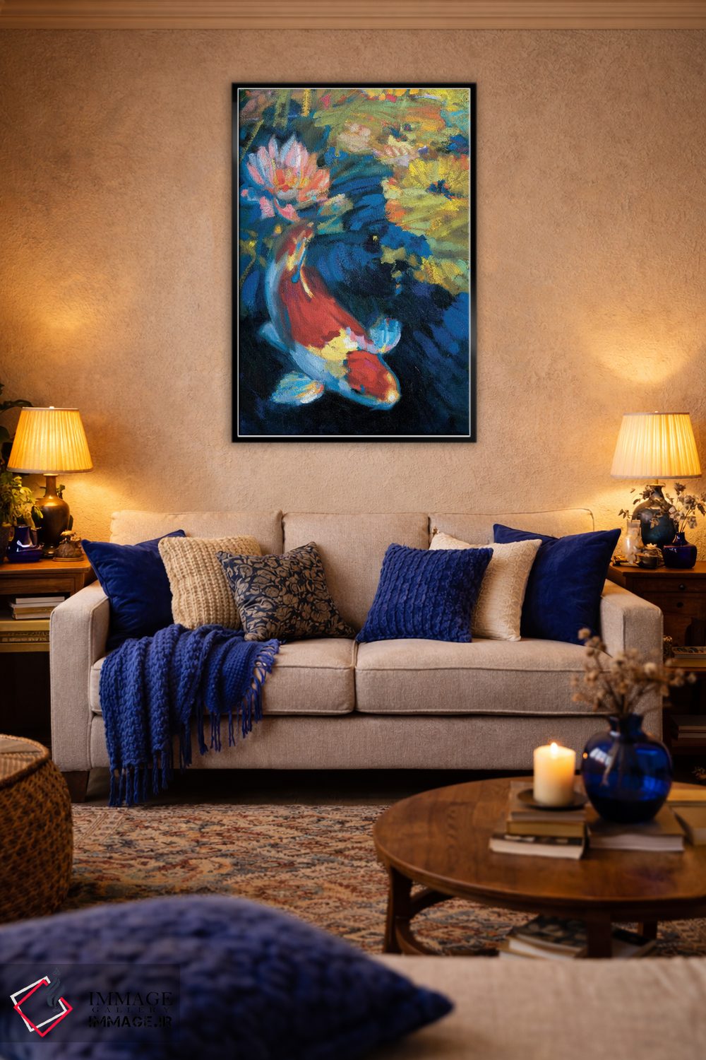 براساس پالت ترکیبی اثر، قاب تیک گرم (چوبی) پیشنهاد اول است و مشکی مات (فریم متوسط) مکمل. برای سفارشهای پروژهای با ابعاد و قابهای اختصاصی با ایماژ در تماس باشید.