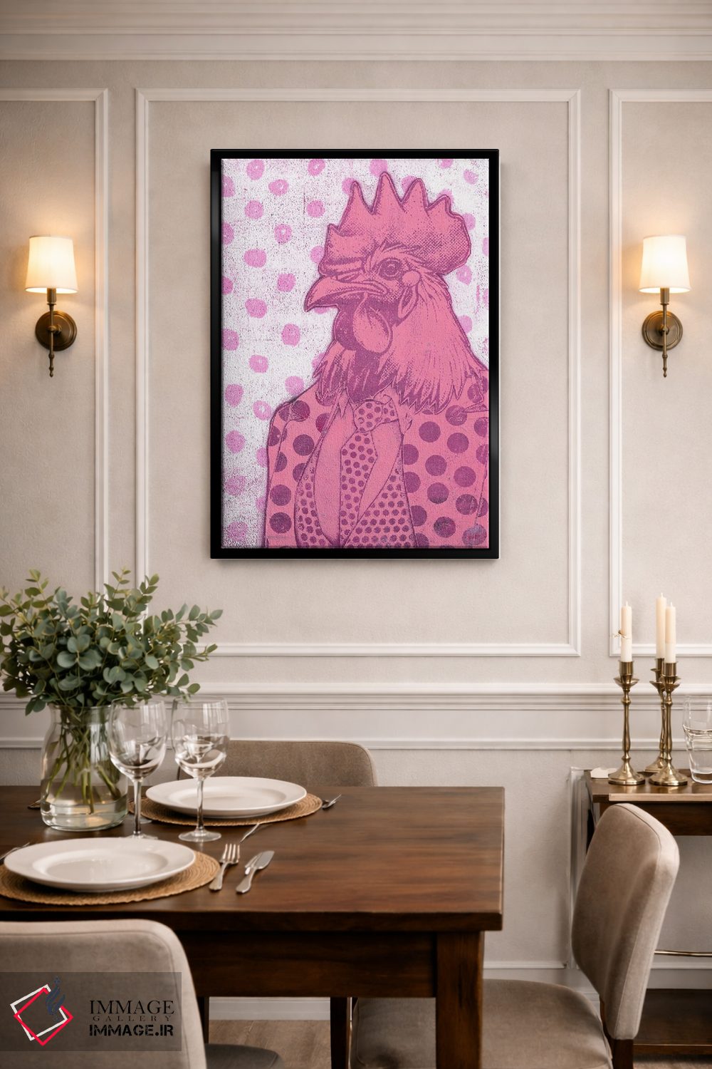 بوم گالری ایماژ طوری طراحی شده که اثر روی دیوار «پرداختشده» و همچنین حرفهای دیده شود—نه پرزرقوبرقِ بیپایه؛ بلکه دقیق و خوشپرداخت. بافت ظریف کنواس باعث میشود حس اثر هنری را در نگاه نزدیک نگه میدارد بدون اغراق؛ فقط دقیقتر. کنترل تونها باعث میشود کمک میکند رنگها روی دیوار واقعیتر بنشینند و نتیجه را یکدستتر میکند. حاصل کار، یک تابلو خوشنشین است که هم از دور اثرگذار است و هم از نزدیک خوشخوان؛ و اگر بخواهید، میتوان چیدمان را برای گالریوال هم پیشنهاد داد.