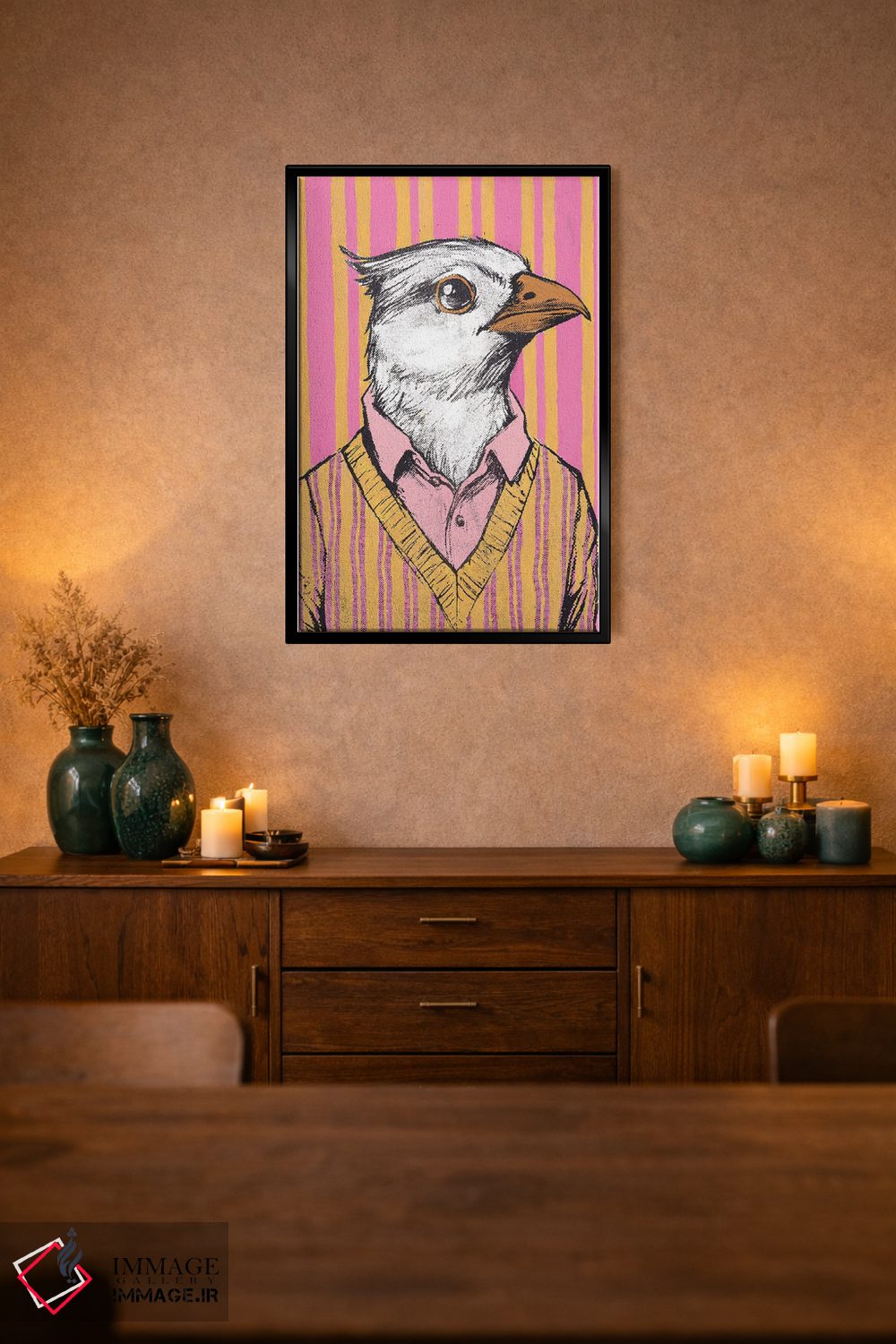 اگر میخواهید اثر برجستهتر شود، صورتی را در اکسسوریها دوباره بیاورید تا رنگها در فضا نفس بکشند. انتخاب قاب هم میتواند این اکسنت را تقویت کند.