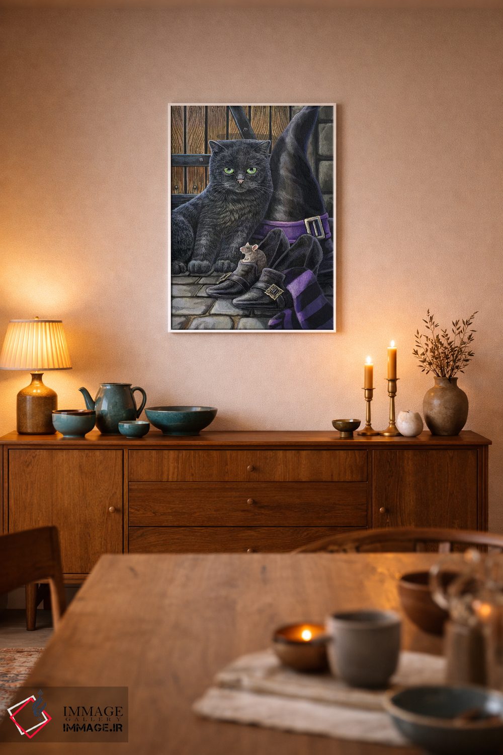 براساس پالت ترکیبی اثر، قاب تیک گرم (چوبی) پیشنهاد اول است و مشکی مات (فریم متوسط) مکمل. برای سفارشهای پروژهای با ابعاد و قابهای اختصاصی با ایماژ در تماس باشید.