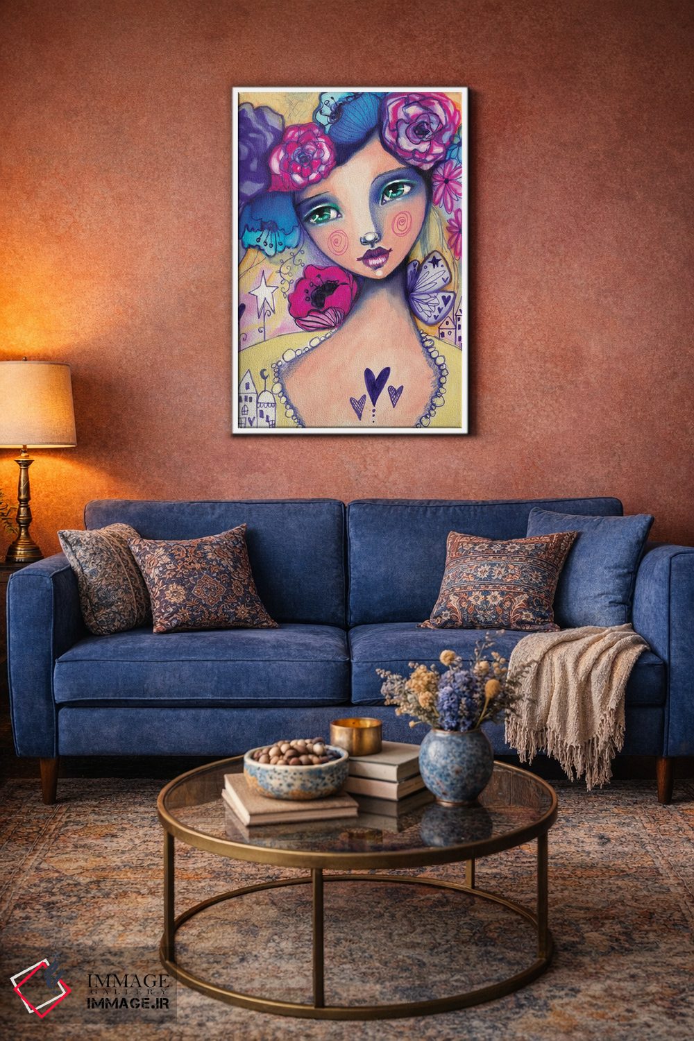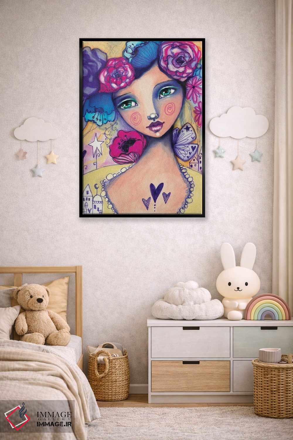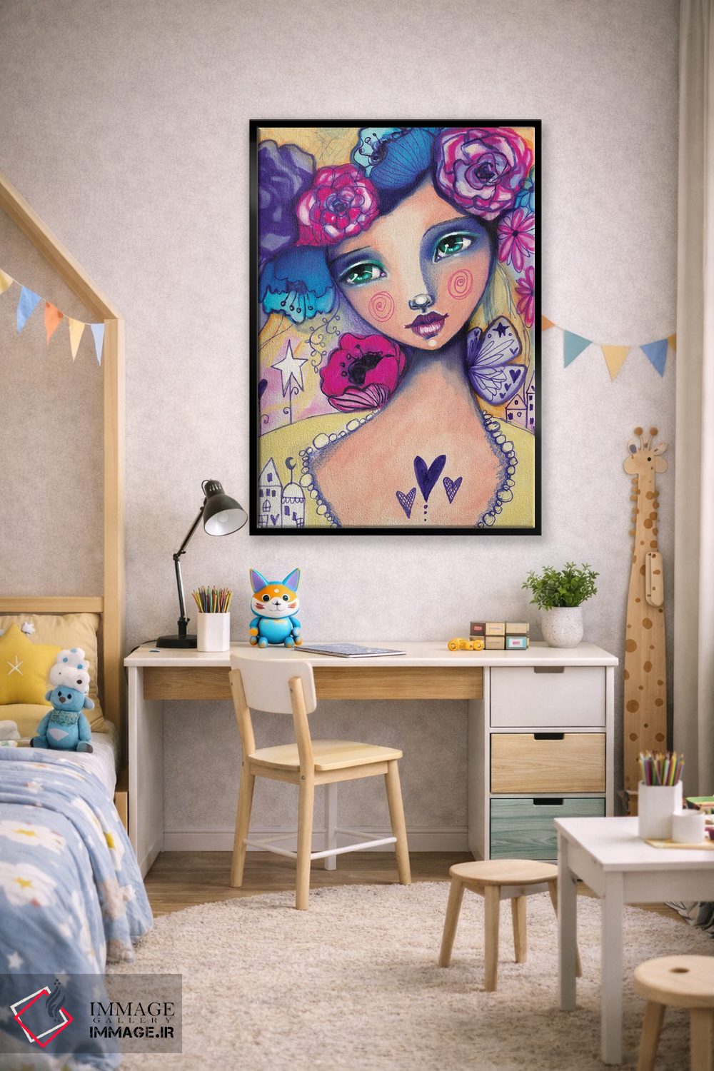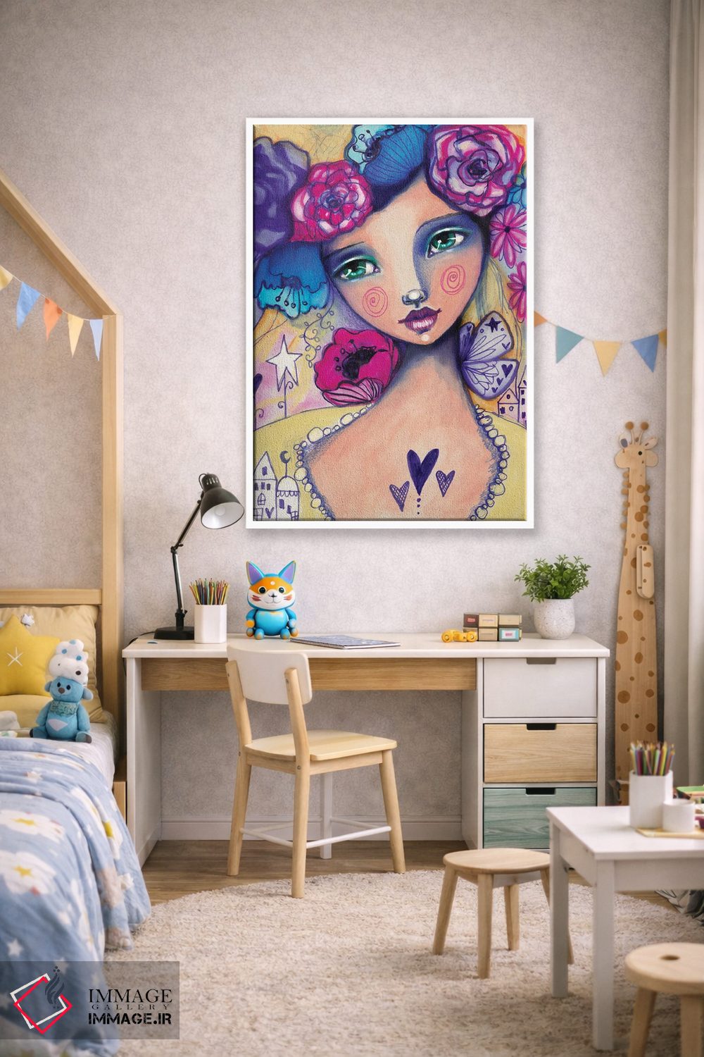 تابلو دکوراتیو زویی دشانل اثر تامارا لاپورت - نمای روبه‌رو روی دیوار
