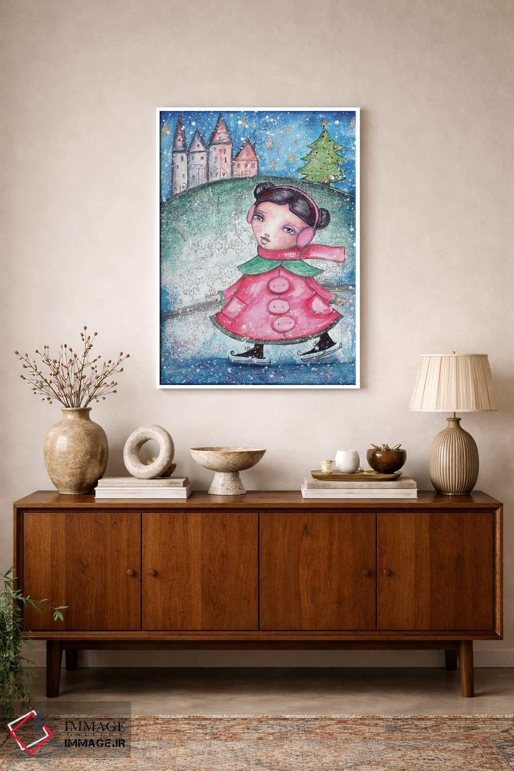 برای ترکیب با گلدانهای سبز، پارچههای ساده و نور گرم، «دختر کریسمس» اثرِ «تامارا لاپورت» با موضوعِ این اثر انتخابی هماهنگ است.