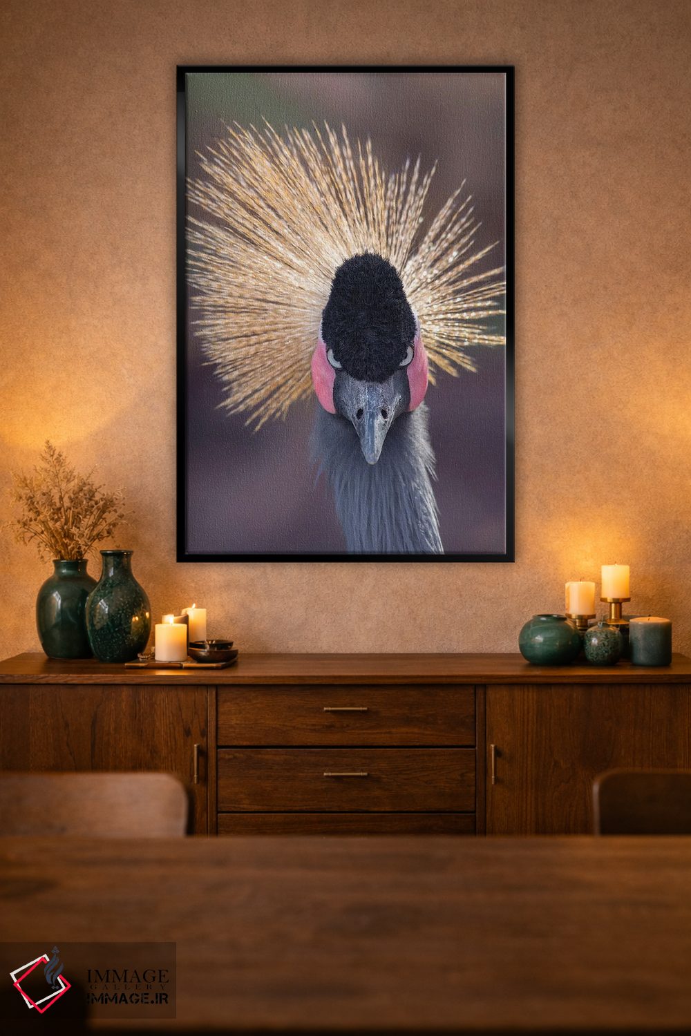 تابلو دکوراتیو خیره شدن درنا به دوربین اثر لوئیس راث