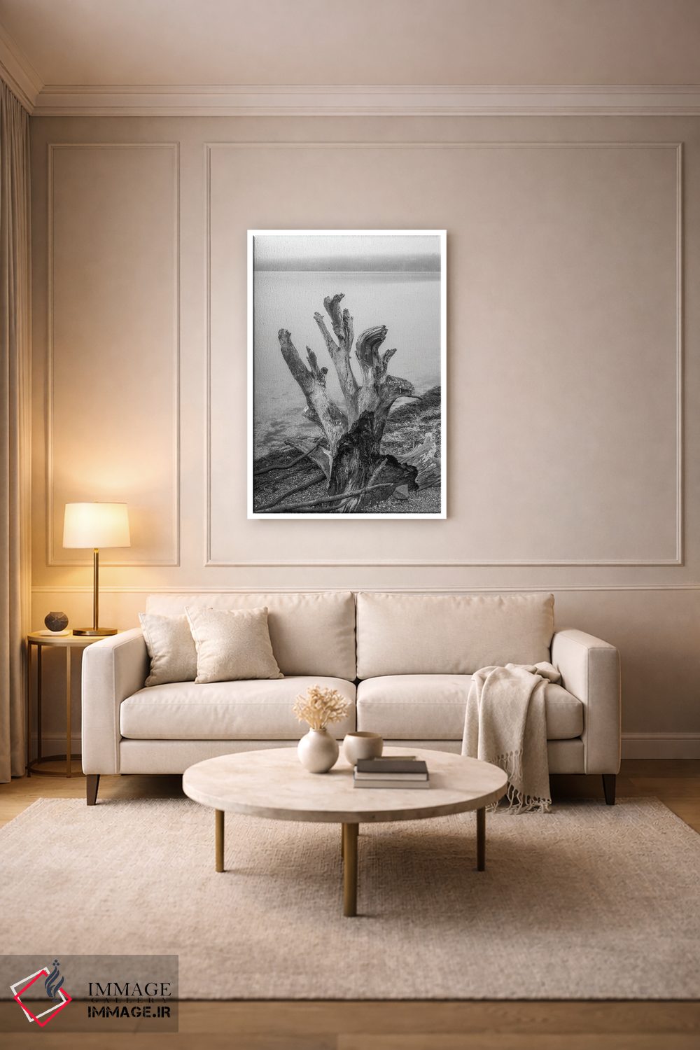 براساس پالت خنثی اثر، قاب مشکی مات (فریم باریک) پیشنهاد اول است و سفید مات (فریم باریک) مکمل. برای سفارشهای پروژهای با ابعاد و قابهای اختصاصی با ایماژ در تماس باشید.