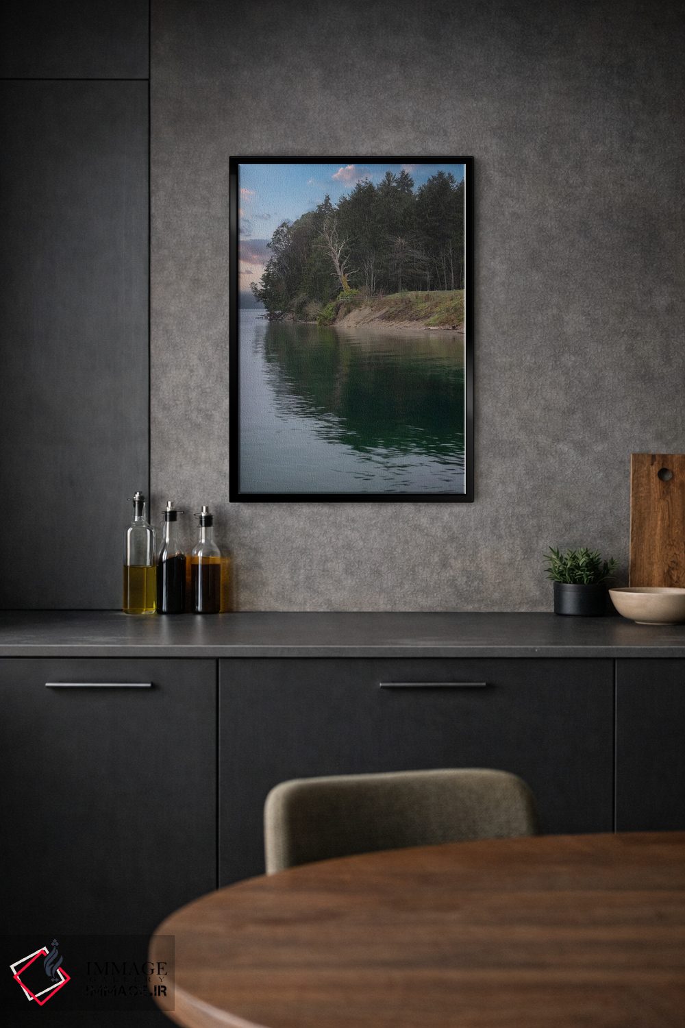 براساس پالت سرد اثر، قاب بلوط روشن (چوبی) پیشنهاد اول است و استخوانی ملایم مکمل. برای سفارشهای پروژهای با ابعاد و قابهای اختصاصی با ایماژ در تماس باشید.