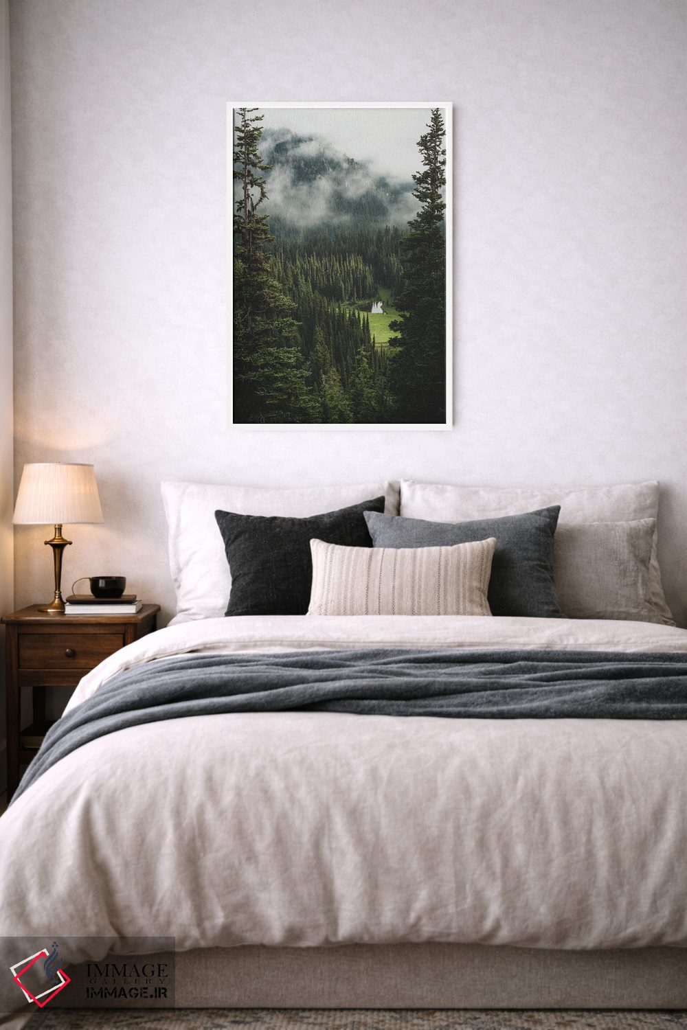 براساس پالت سرد اثر، قاب بلوط روشن (چوبی) پیشنهاد اول است و استخوانی ملایم مکمل. برای سفارشهای پروژهای با ابعاد و قابهای اختصاصی با ایماژ در تماس باشید.