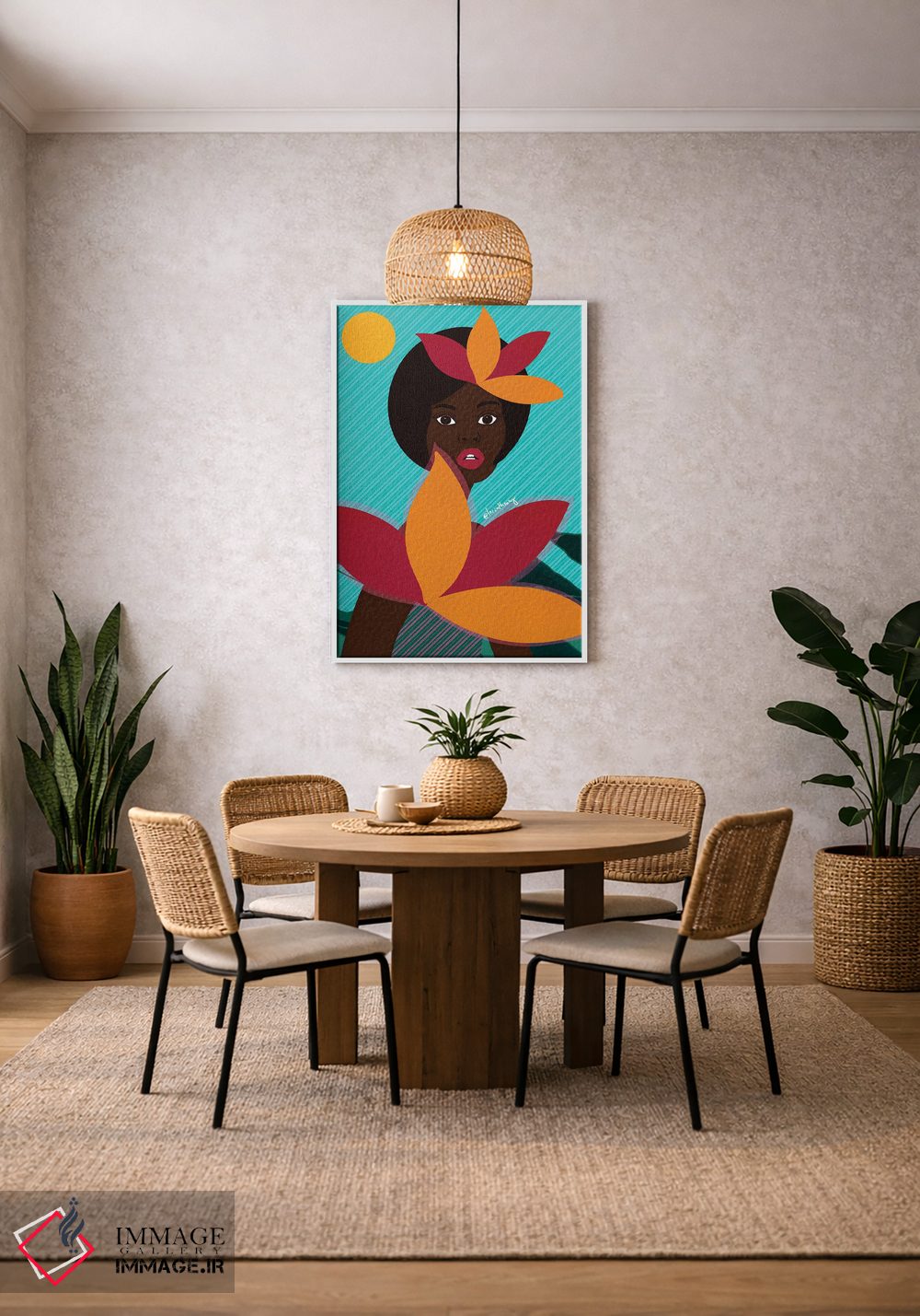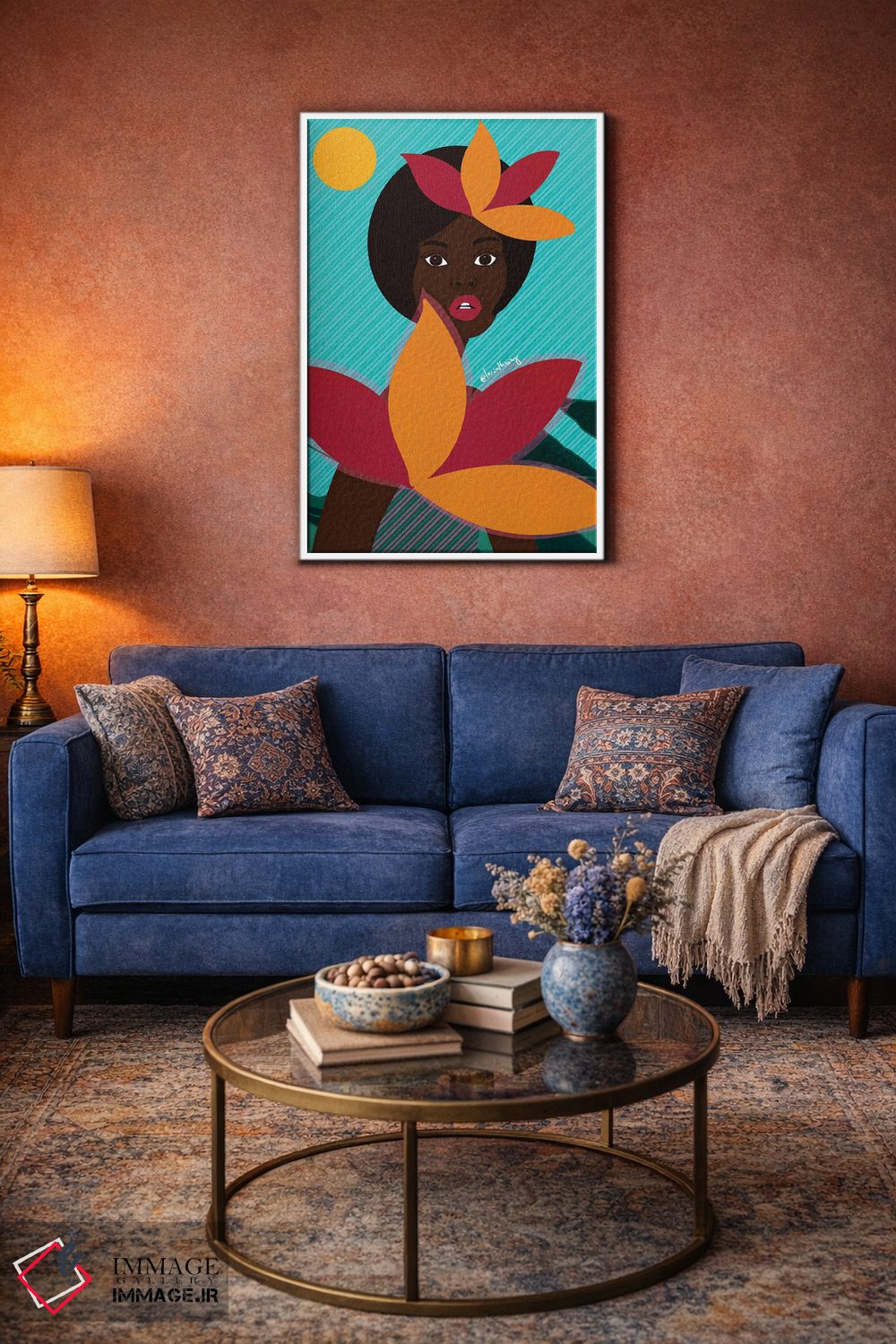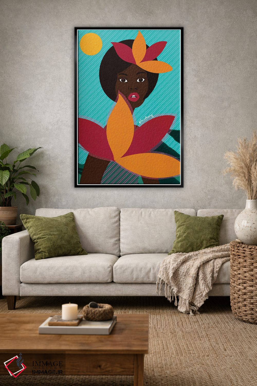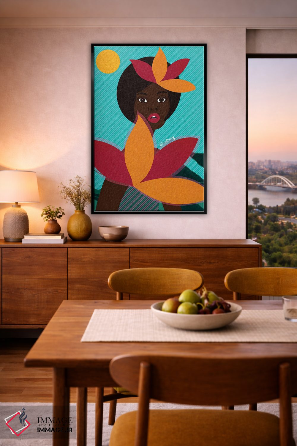براساس پالت ترکیبی اثر، قاب تیک گرم (چوبی) پیشنهاد اول است و مشکی مات (فریم متوسط) مکمل. برای سفارشهای پروژهای با ابعاد و قابهای اختصاصی با ایماژ در تماس باشید.