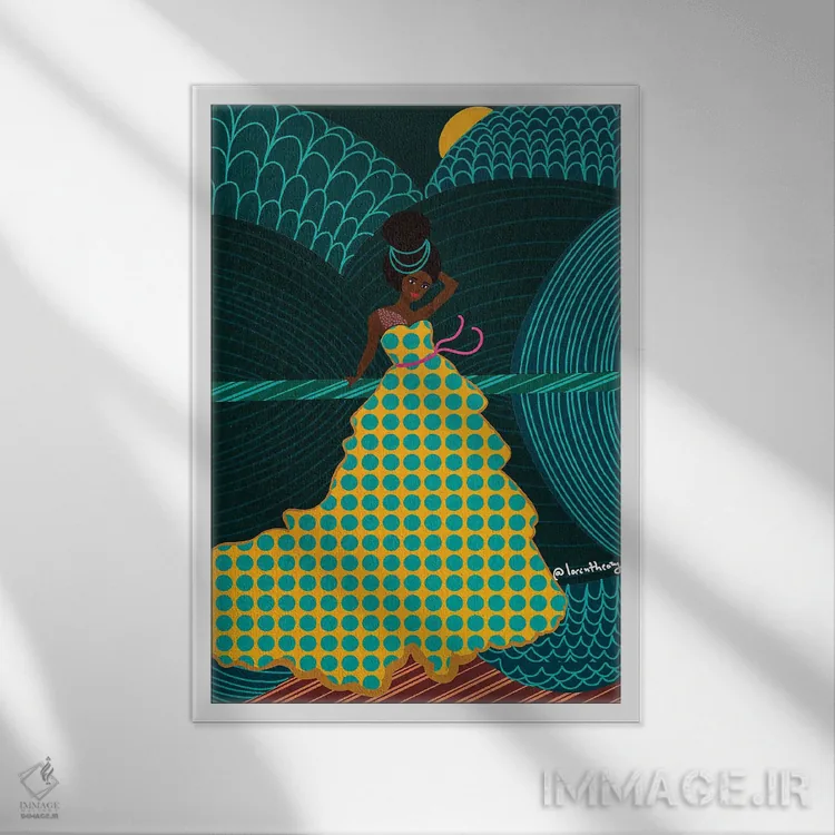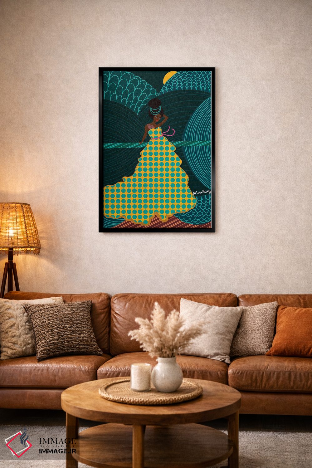 براساس پالت ترکیبی اثر، قاب تیک گرم (چوبی) پیشنهاد اول است و مشکی مات (فریم متوسط) مکمل. برای سفارشهای پروژهای با ابعاد و قابهای اختصاصی با ایماژ در تماس باشید.