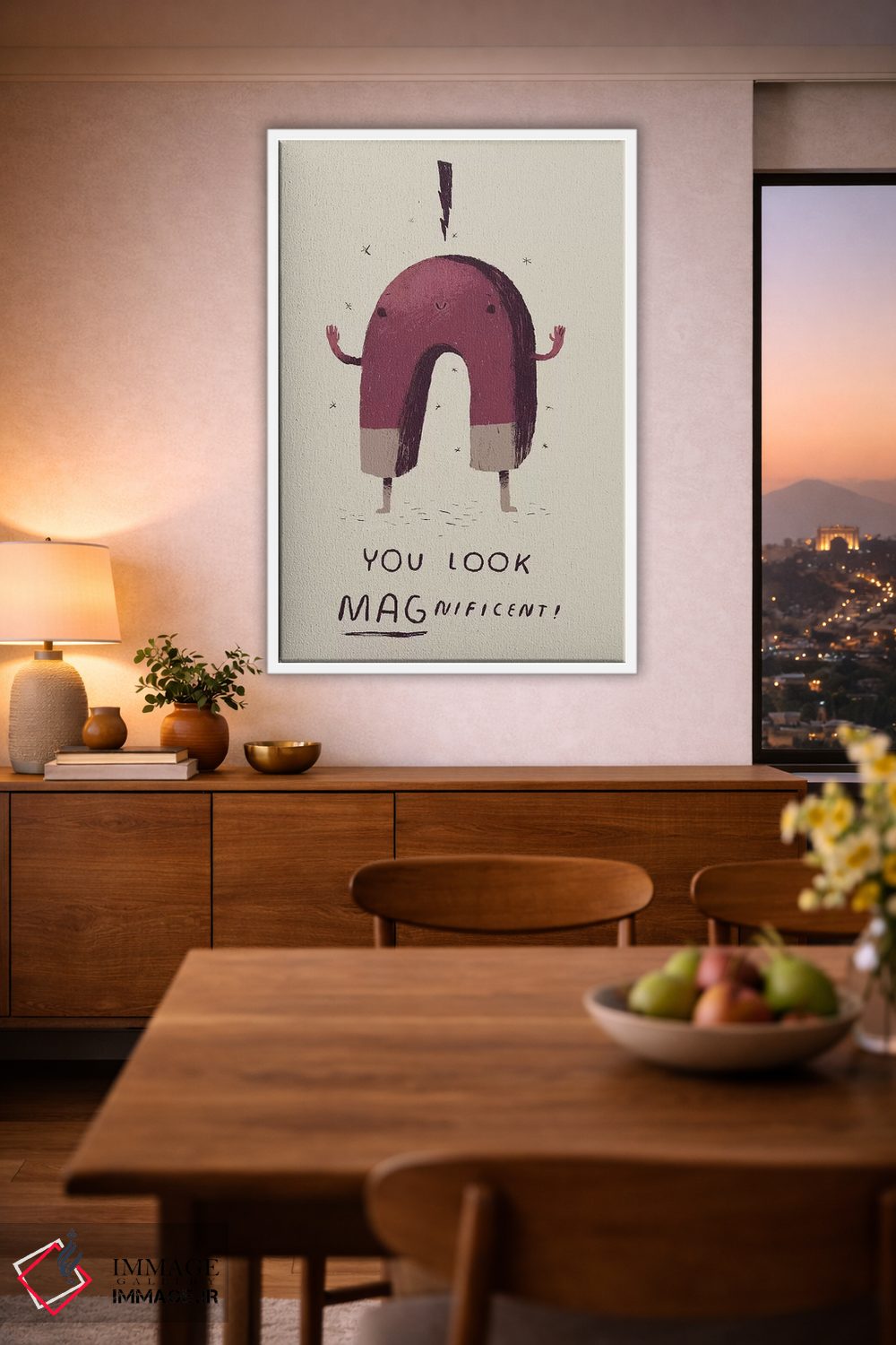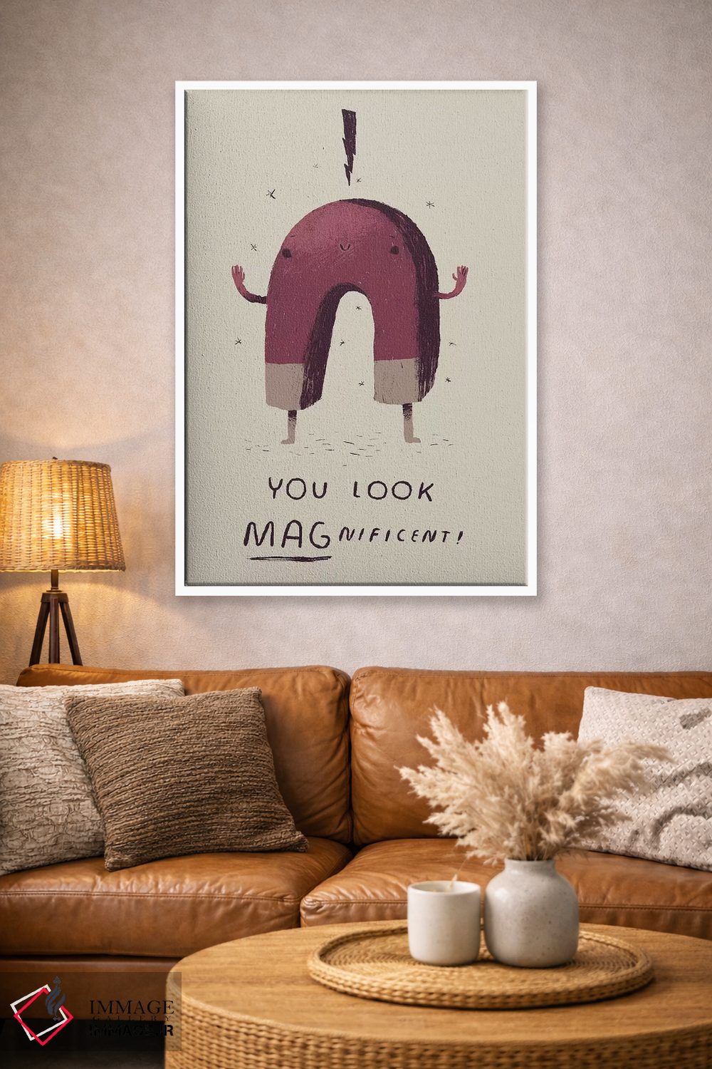 «مغناطیسوار شگفتانگیز (بازی واژگانی با magnificent)» اثرِ «لوئیس روسکوش» با اجرای پرداختِ هنری، به دیوار شخصیت میدهد؛ مناسبِ فضای کار، اتاق نوجوان یا گوشهی مطالعه.