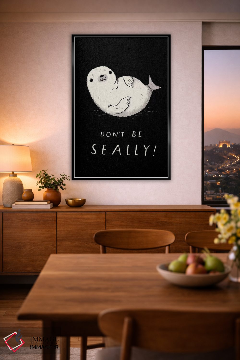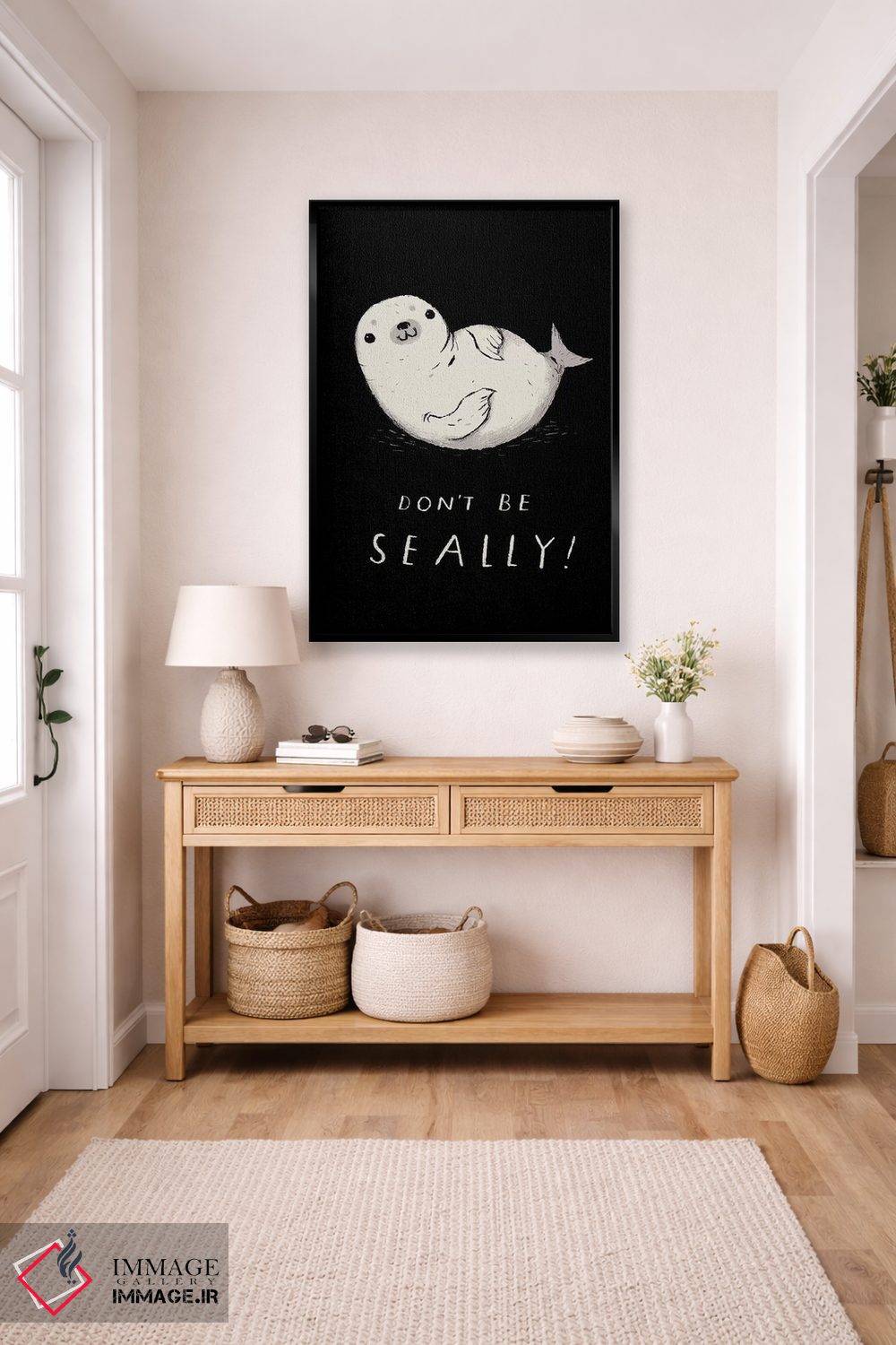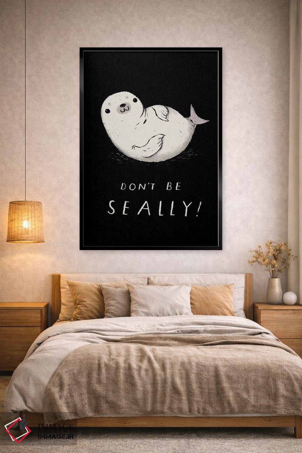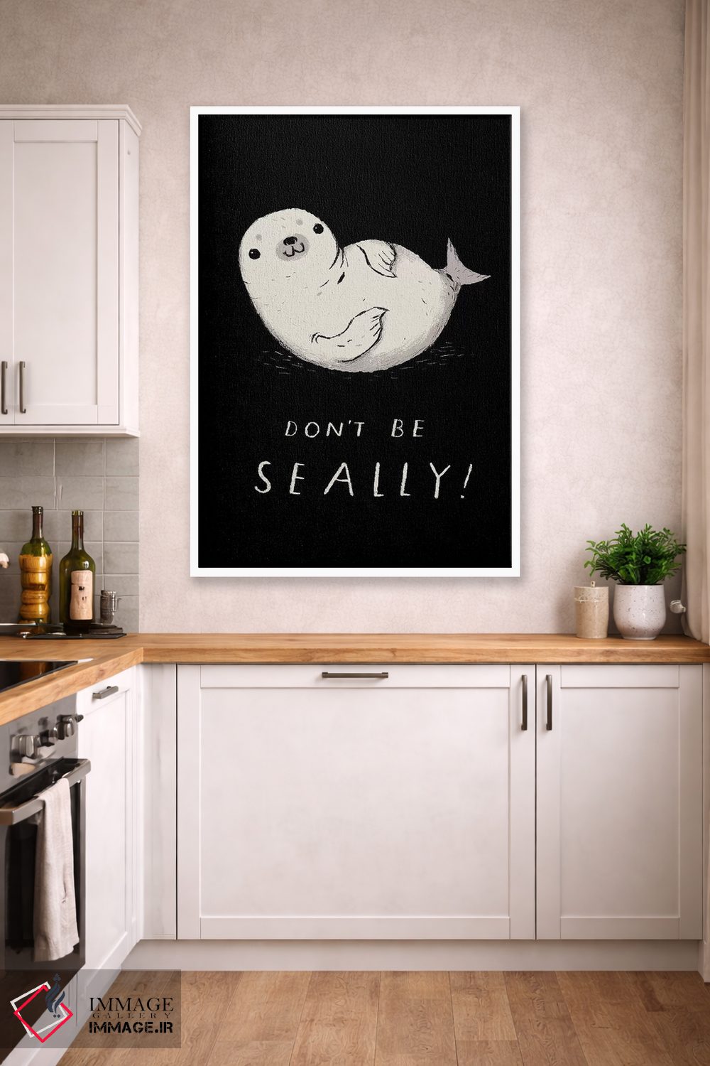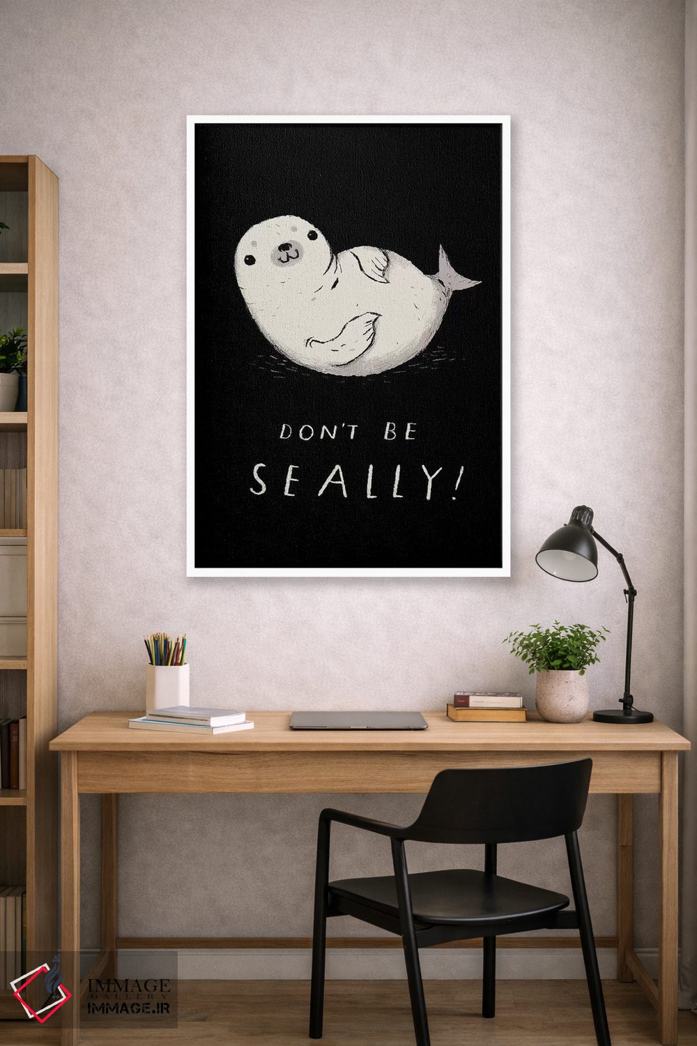 برای دیوارهای ساده، «فکی (بازی واژگانی با seal)» اثرِ «لوئیس روسکوش» به دیوار، انرژیِ نرم و زنده میدهد؛ برای دکورهایی با رنگهای خنثی انتخابی خوشسلیقه است. با قاب چوبی یا مشکی، حس مرتبتری پیدا میکند.