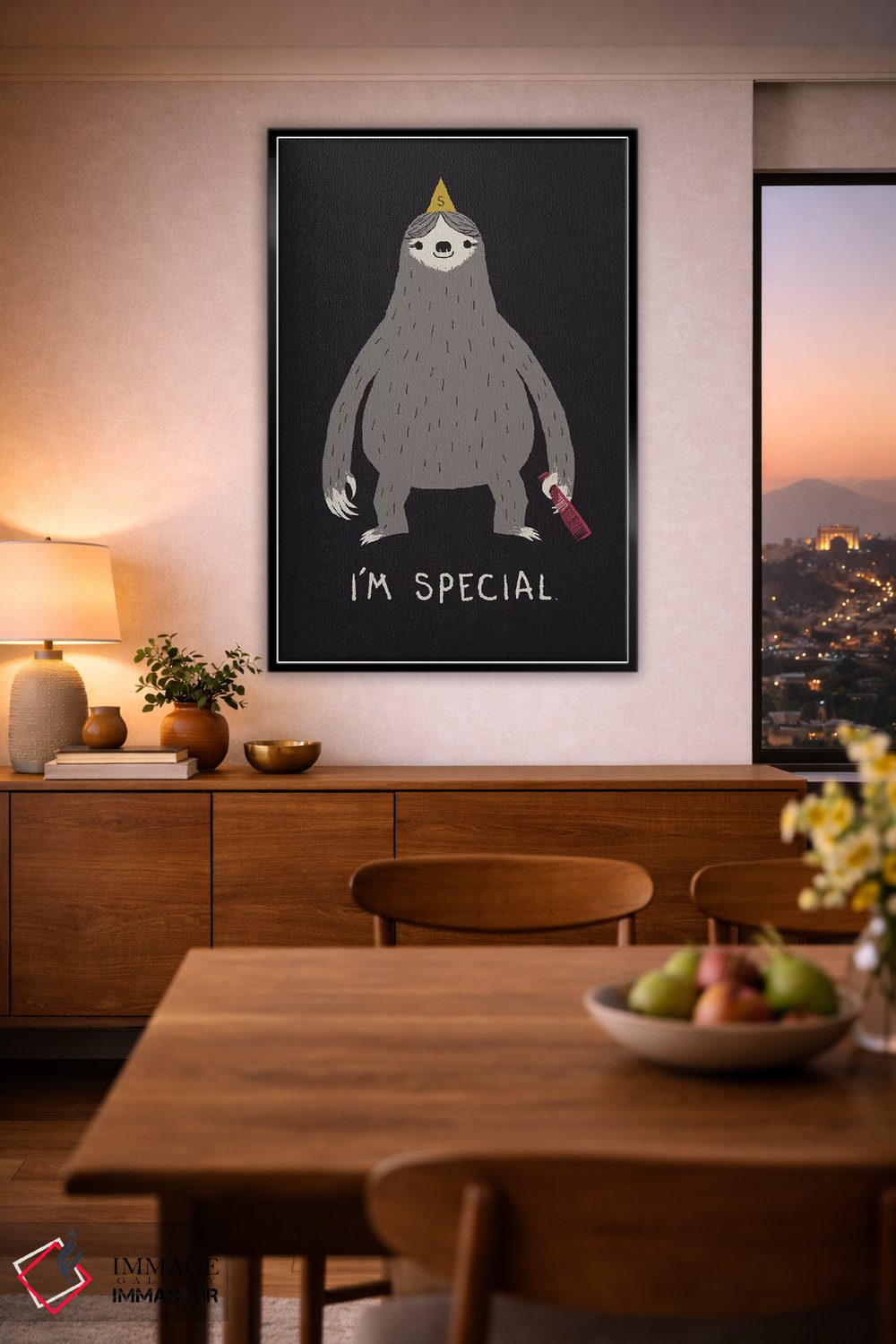 در «تنبل (حیوان)» اثرِ «لوئیس روسکوش»، حضور حیوانات گرما و شخصیت به فضا اضافه میکند؛ برای خانههایی با چوب و پارچههای گرم انتخابی خوشسلیقه است. برای دیوار گالریوار هم گزینهٔ خوبیست.
