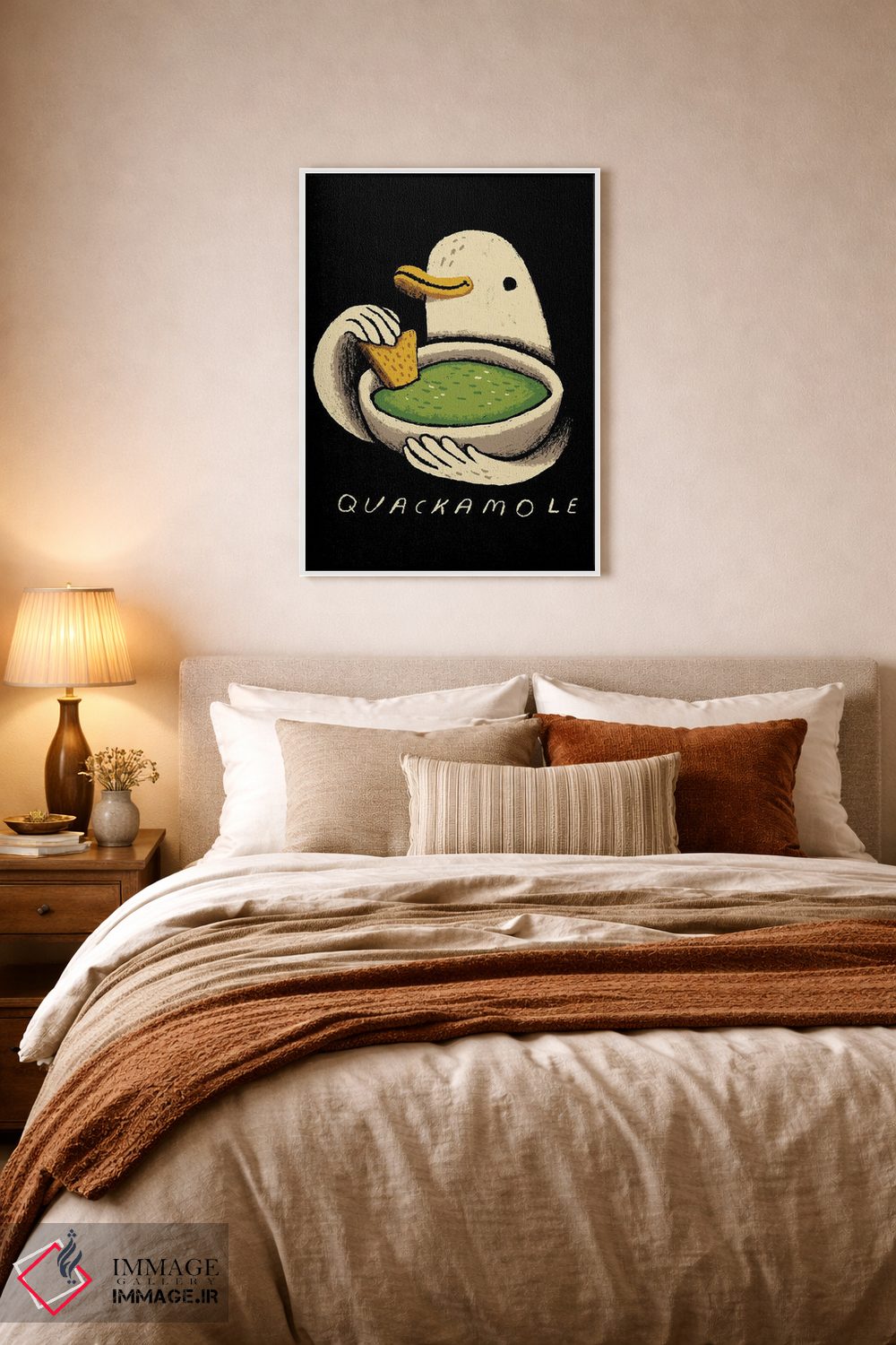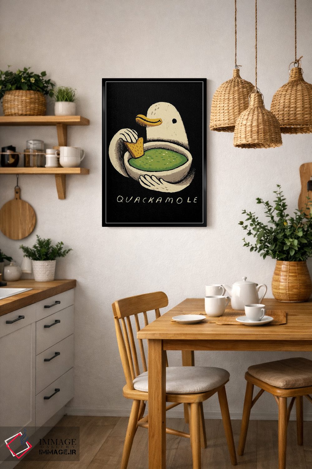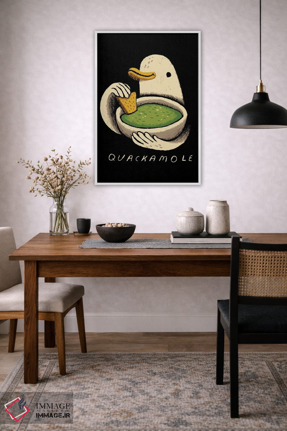 در «آواکادو اردکی (بازی واژگانی با guacamole)» اثرِ «لوئیس روسکوش»، حضور حیوانات در کنار رنگهای خنثی، تضاد دلچسبی میسازد؛ برای فضاهای روستیک یا بوهو انتخابی خوشسلیقه است. به دیوار، قصه میدهد—اما قصهای آرام و شیک.
