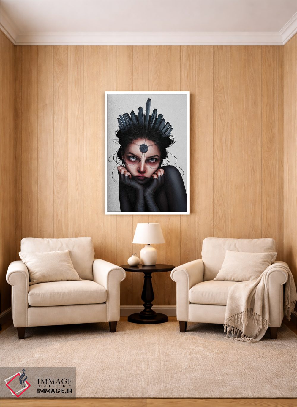 براساس پالت گرم اثر، قاب تیک گرم (چوبی) پیشنهاد اول است و مشکی مات (فریم متوسط) مکمل. برای سفارشهای پروژهای با ابعاد و قابهای اختصاصی با ایماژ در تماس باشید.