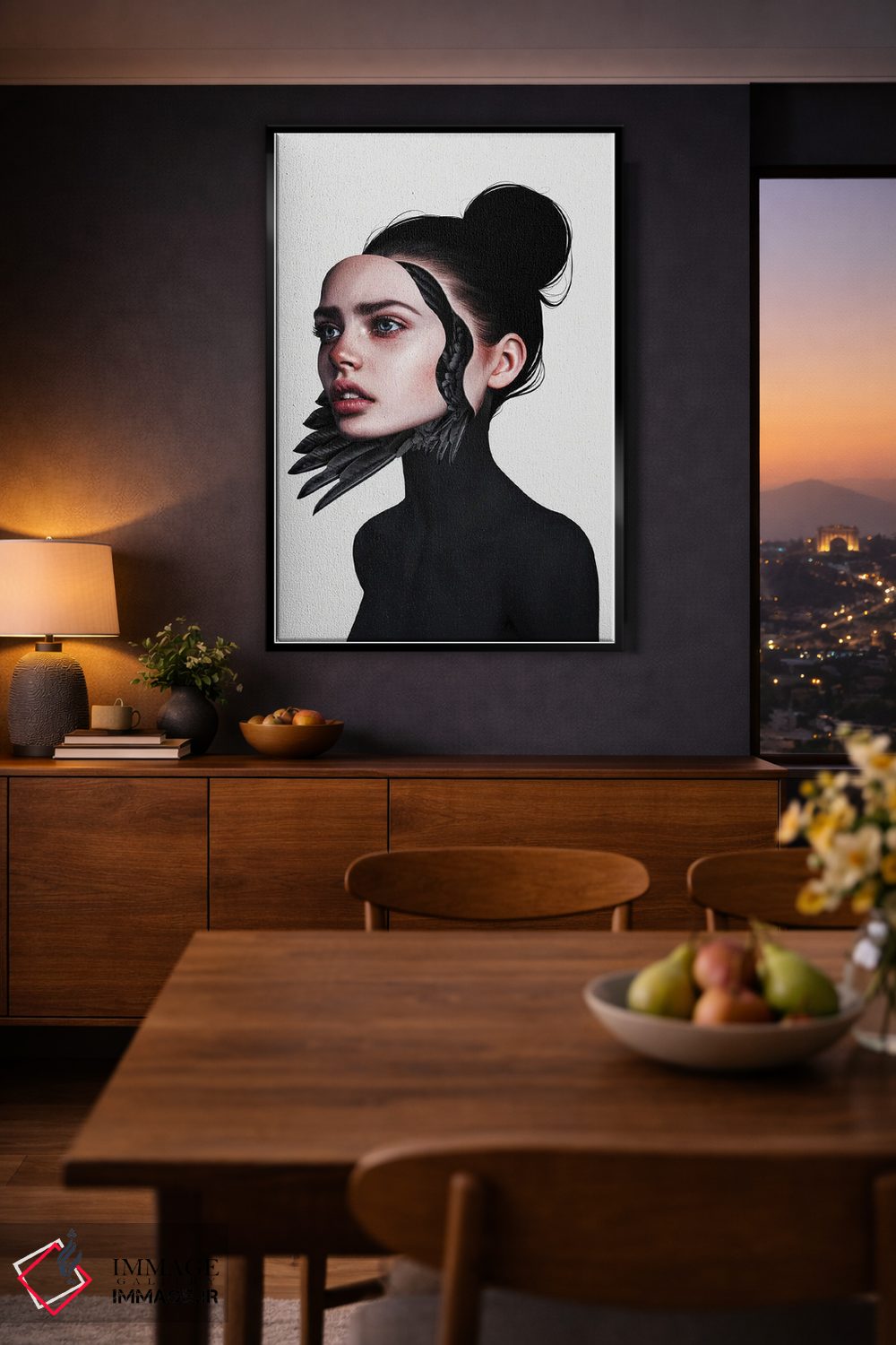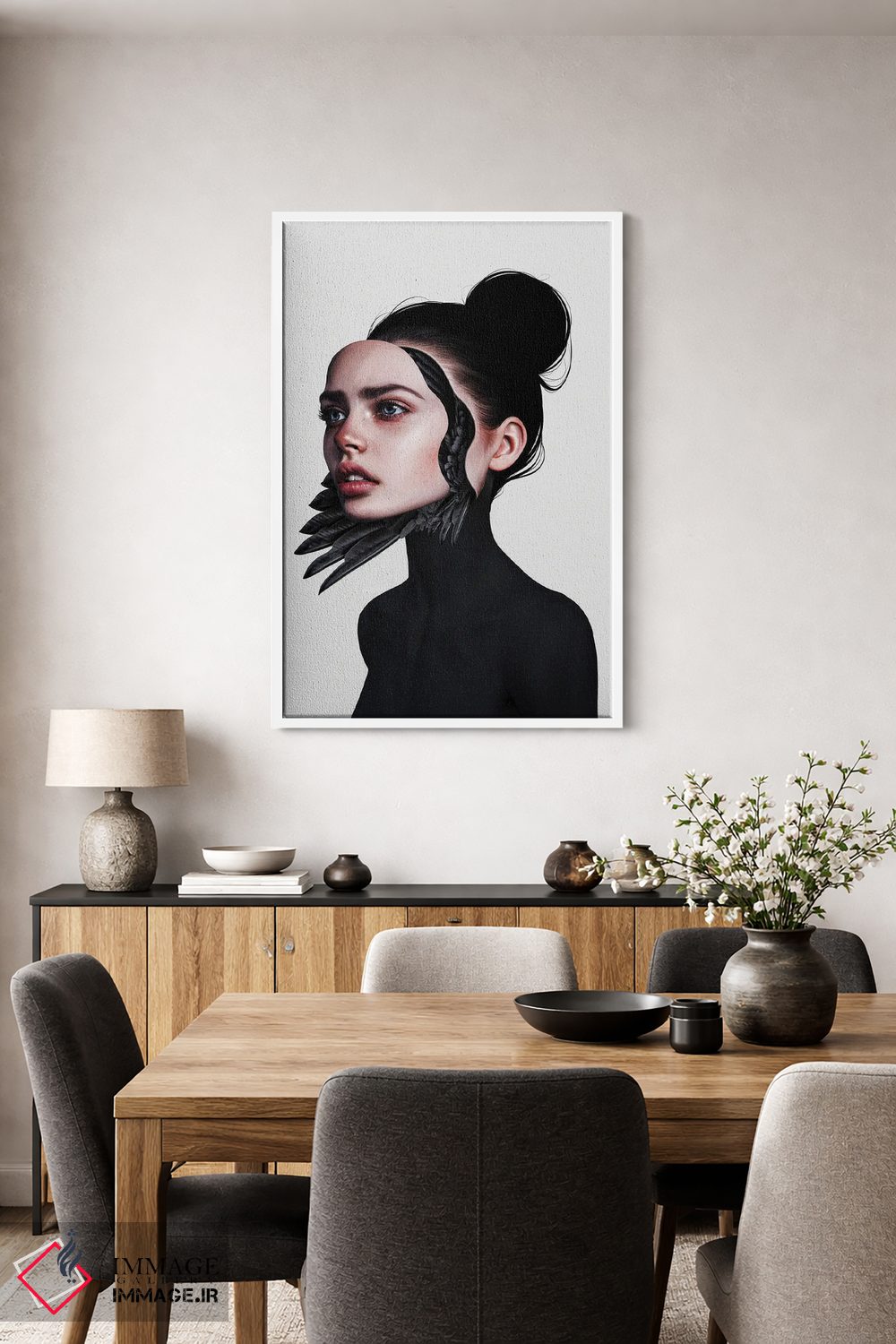 طراحی بوم گالری ایماژ بهگونهای است که اثر روی دیوار «پرداختشده» و حرفهای دیده شود—نه پرزرقوبرقِ بیپایه؛ بلکه دقیق و خوشپرداخت. با بافت ظریف کنواس، حس اثر هنری را در نگاه نزدیک نگه میدارد بدون اغراق؛ فقط دقیقتر. چاپ جیکلی (Giclée) باعث میشود گذارهای رنگی را نرمتر میکند. اگر دوست دارید قاب هم اضافه شود، میتوانید از گزینههای سایت استفاده کنید یا برای انتخاب سفارشی هماهنگ کنید؛ برای هدیهی هنری هم انتخاب محترمانهای است.
