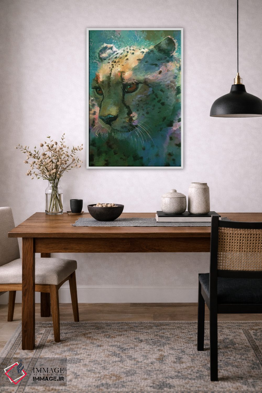 براساس پالت ترکیبی اثر، قاب تیک گرم (چوبی) پیشنهاد اول است و مشکی مات (فریم متوسط) مکمل. برای سفارشهای پروژهای با ابعاد و قابهای اختصاصی با ایماژ در تماس باشید.