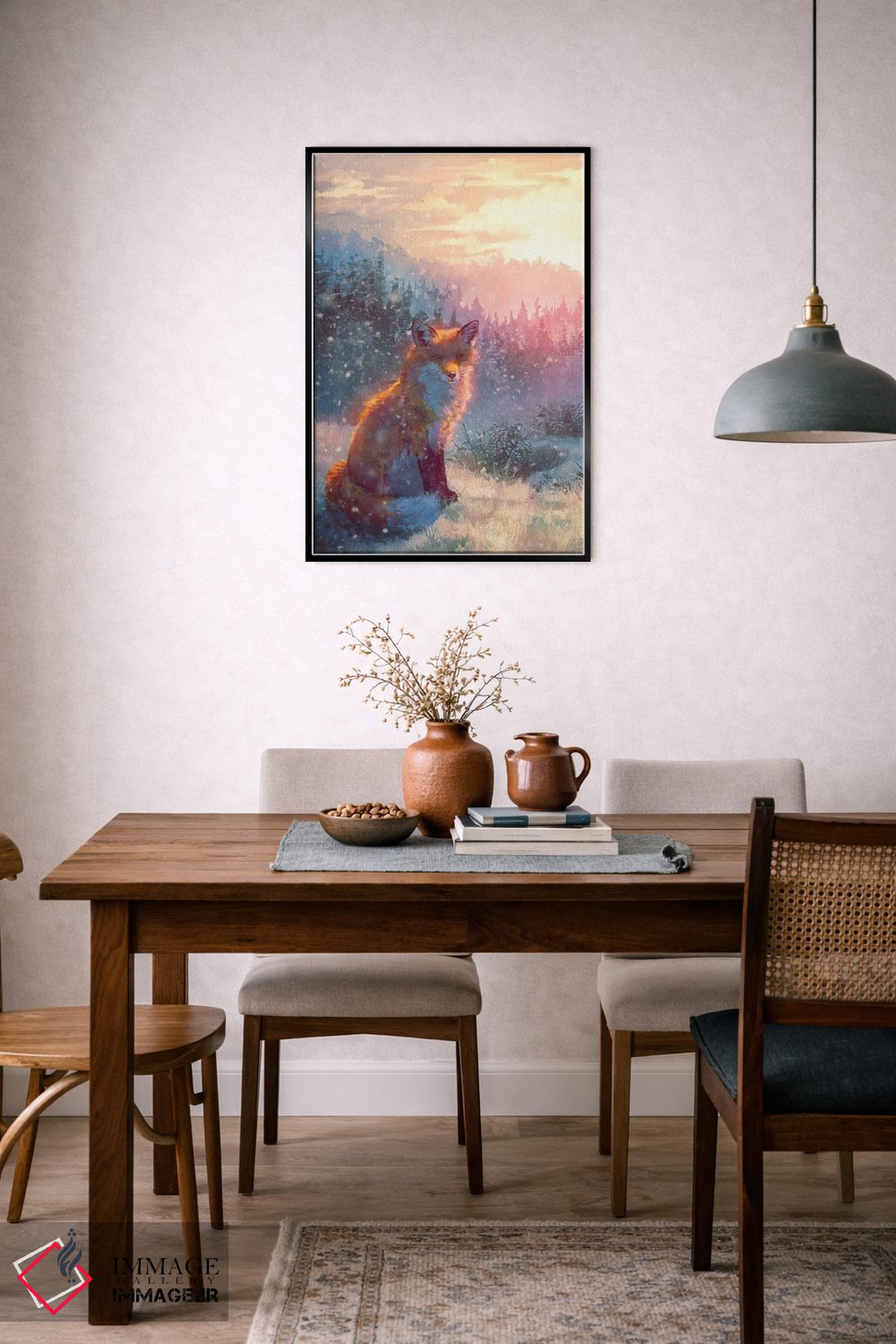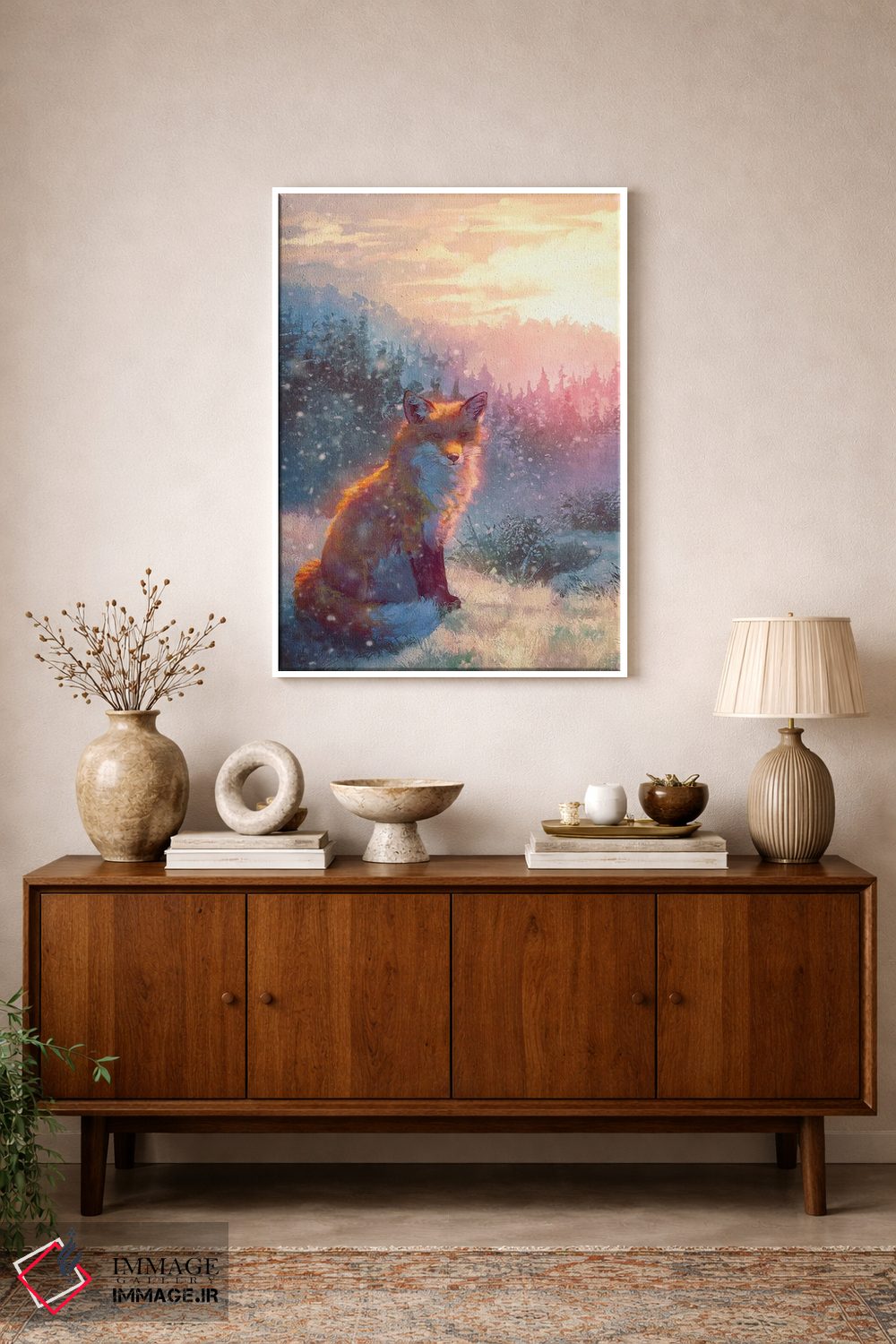 بوم گالری ایماژ طوری طراحی شده که اثر روی دیوار «پرداختشده» و حرفهای دیده شود—نه پرزرقوبرقِ بیپایه؛ بلکه دقیق و خوشپرداخت. بافت ظریف کنواس کمک میکند حس اثر هنری را در نگاه نزدیک نگه میدارد و همان «پرداخت» تفاوت را میسازد. چاپ جیکلی (Giclée) باعث میشود گرباورهاها را تمیزتر و طبیعیتر نشان میدهد و نتیجه را یکدستتر میکند. حاصل کار، یک تابلو خوشنشین است که هم از دور اثرگذار است و هم از نزدیک خوشخوان؛ و اگر بخواهید، میتوان چیدمان را برای گالریوال هم پیشنهاد داد. برای پروژههای معماری داخلی، انتخاب اندازه و قاب را میتوان دقیقتر هماهنگ کرد.
